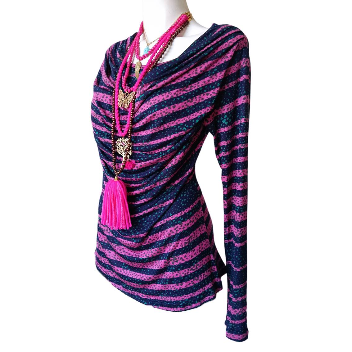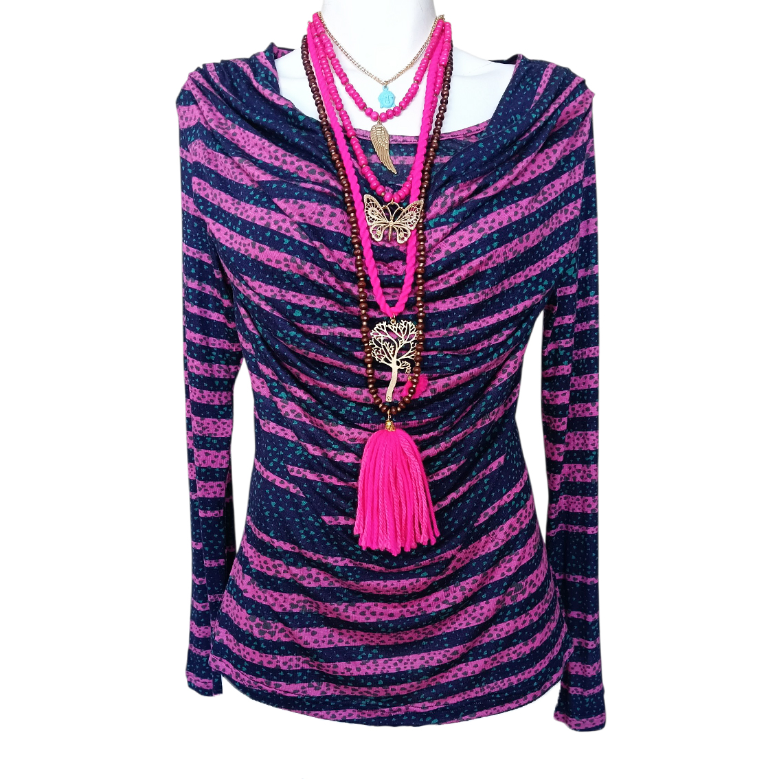 Color marino, rosa, manchas turquesa.
