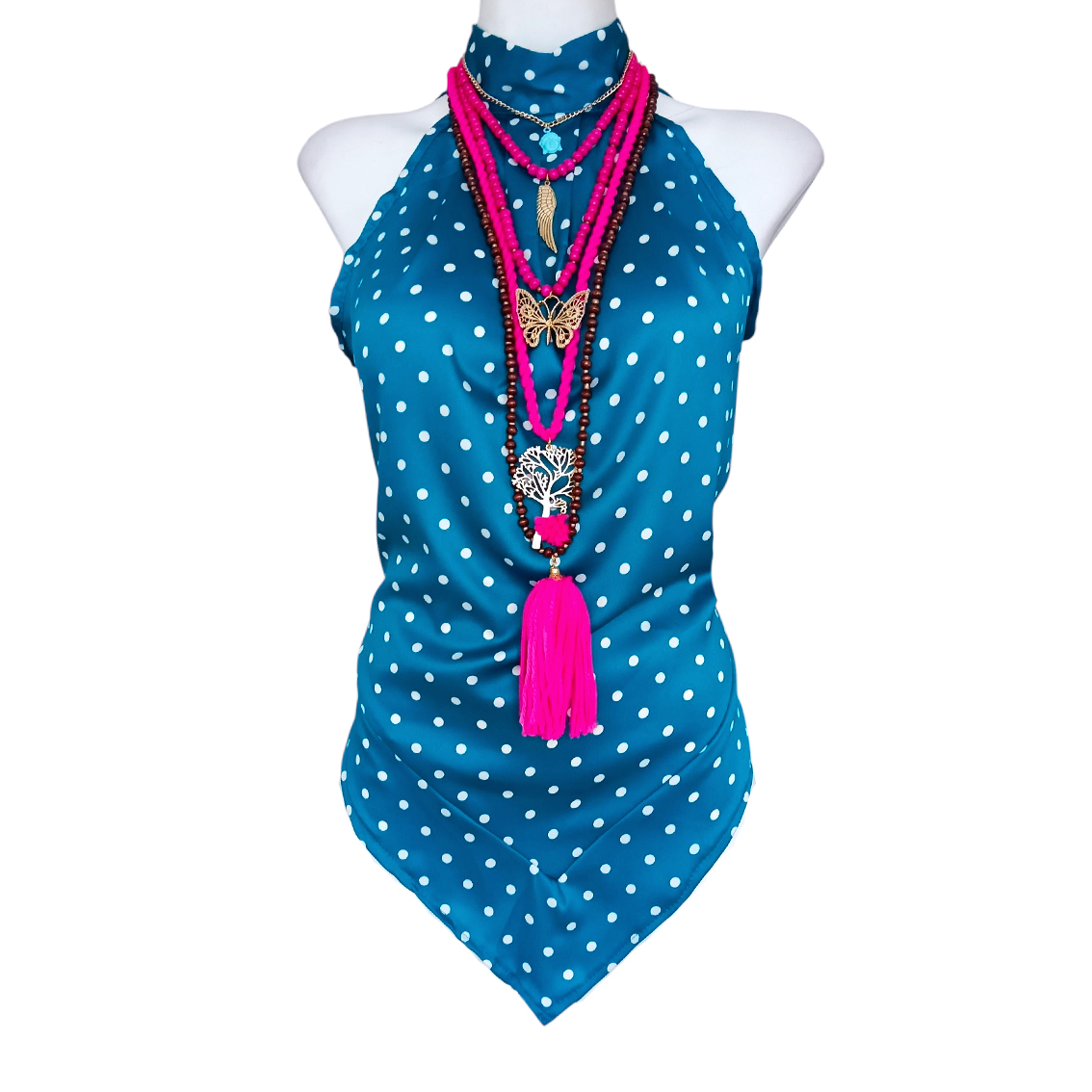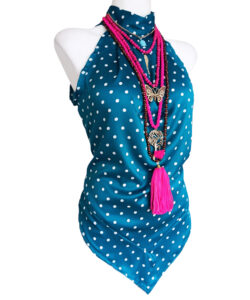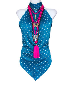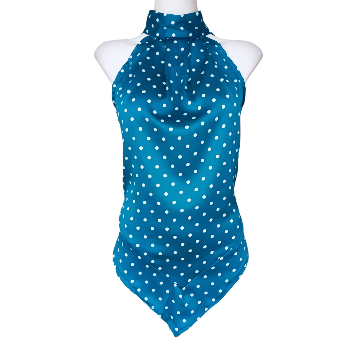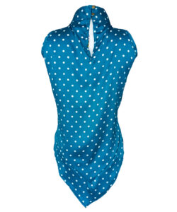 Color azul, lunares blancos.