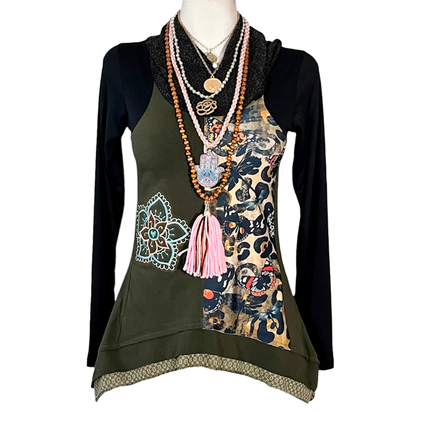 Blusa simona cuello olivo negro