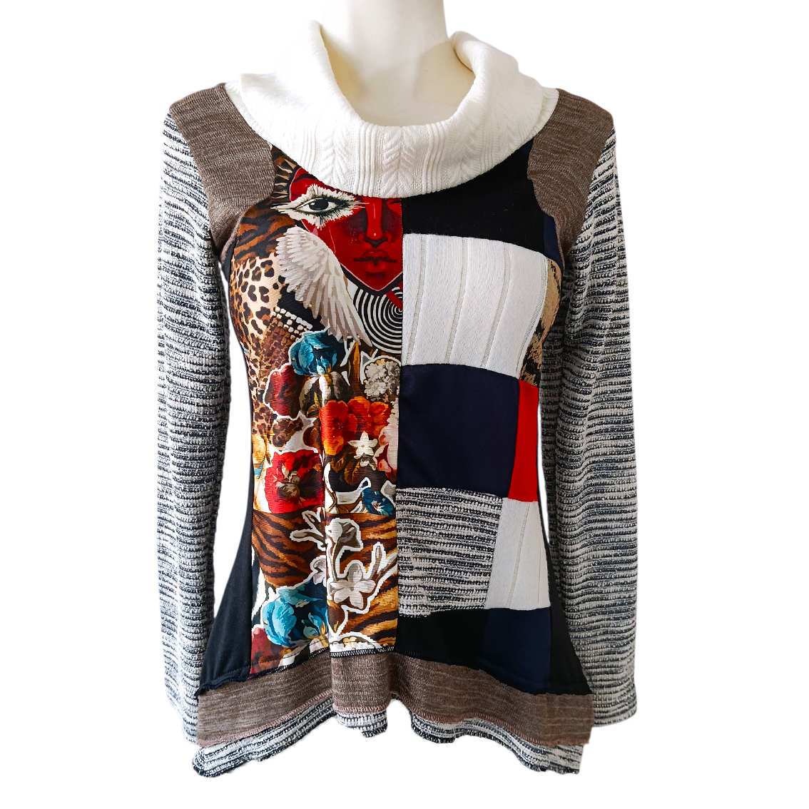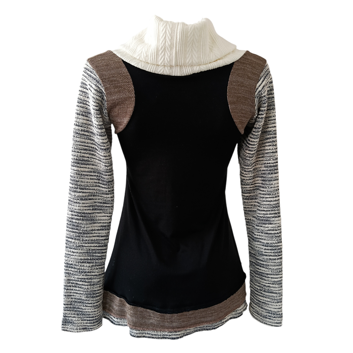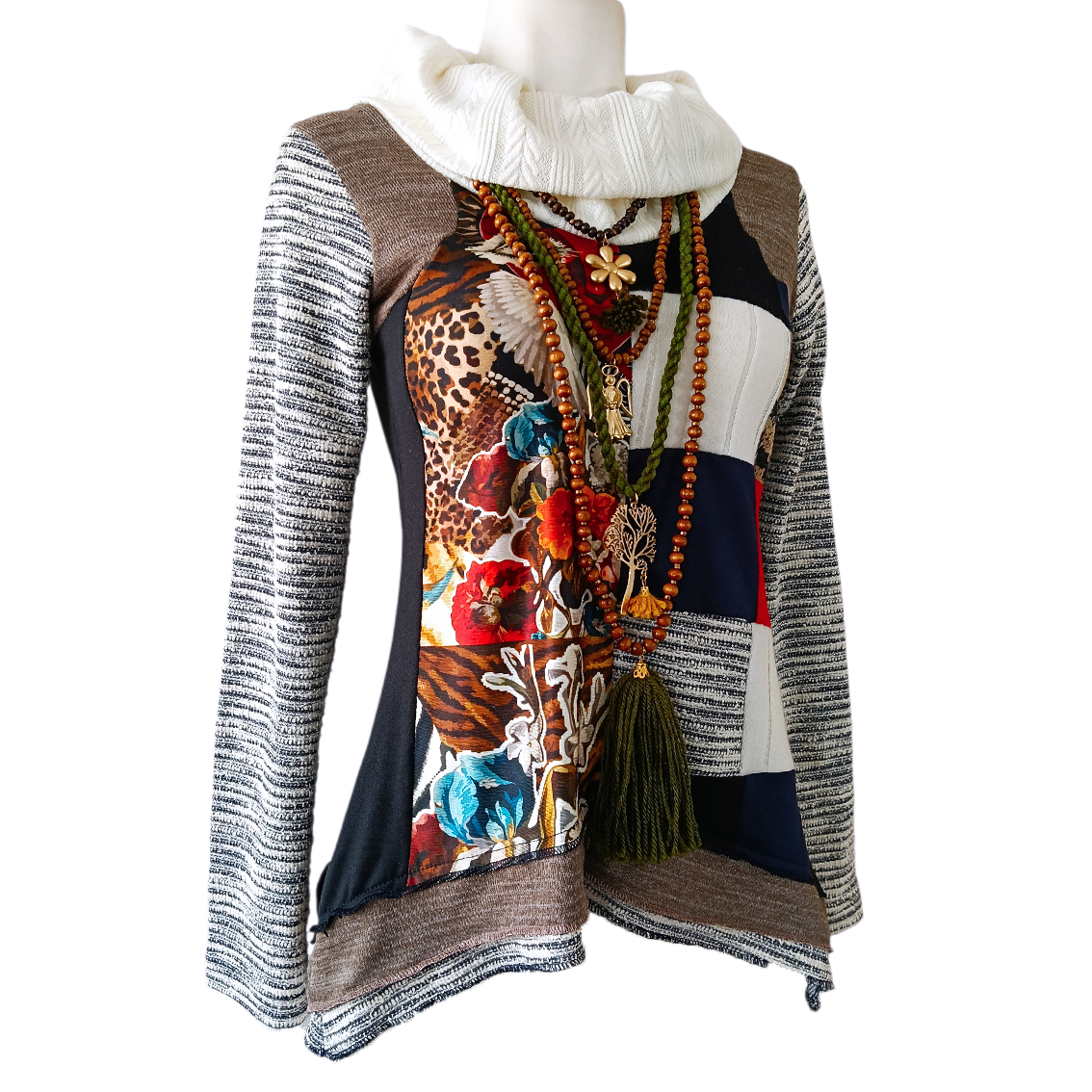 Cuello alto, holgado.