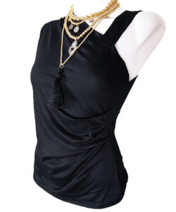Escote tipo asimétrico cruzado.