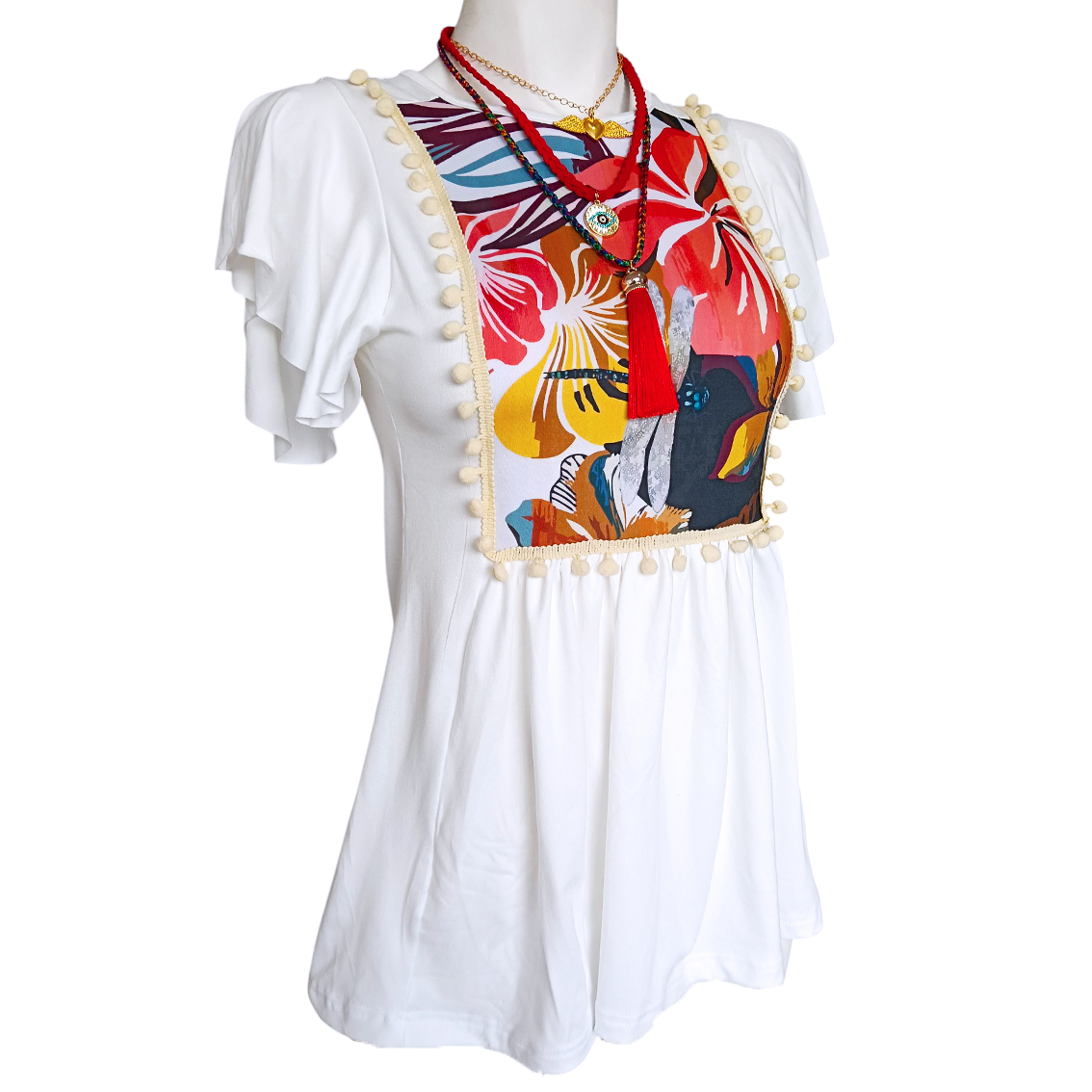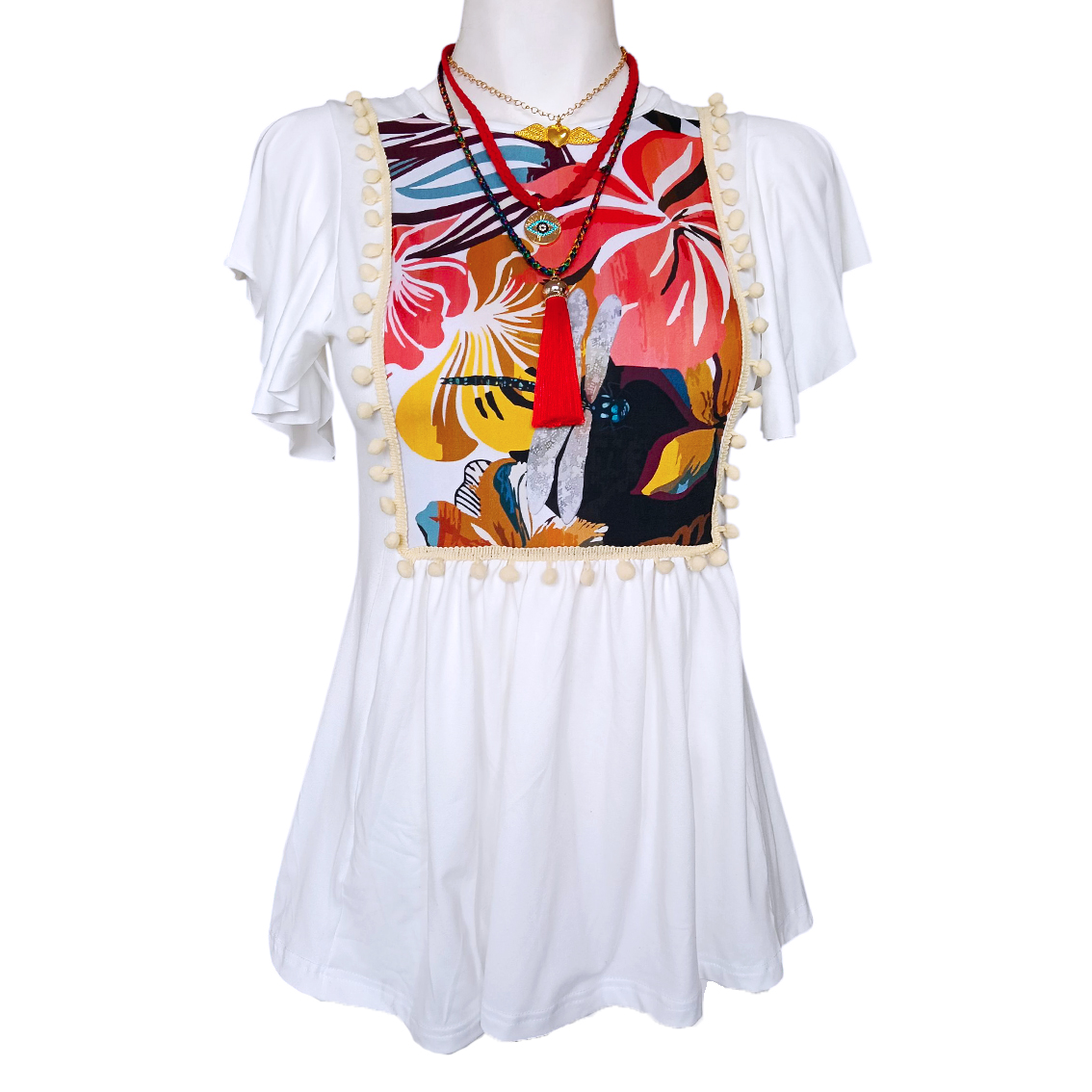 Pecho estampado floral en pecho.