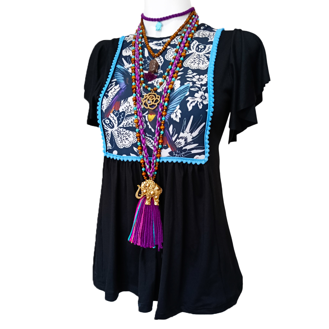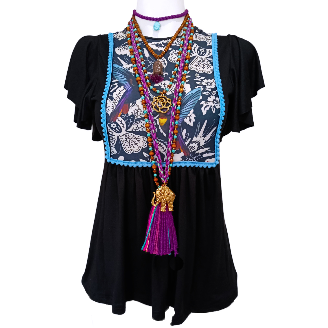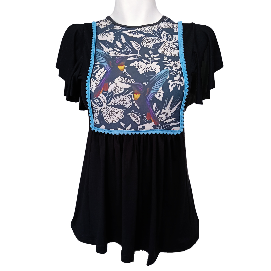 Pechito sublimado de colibríes.