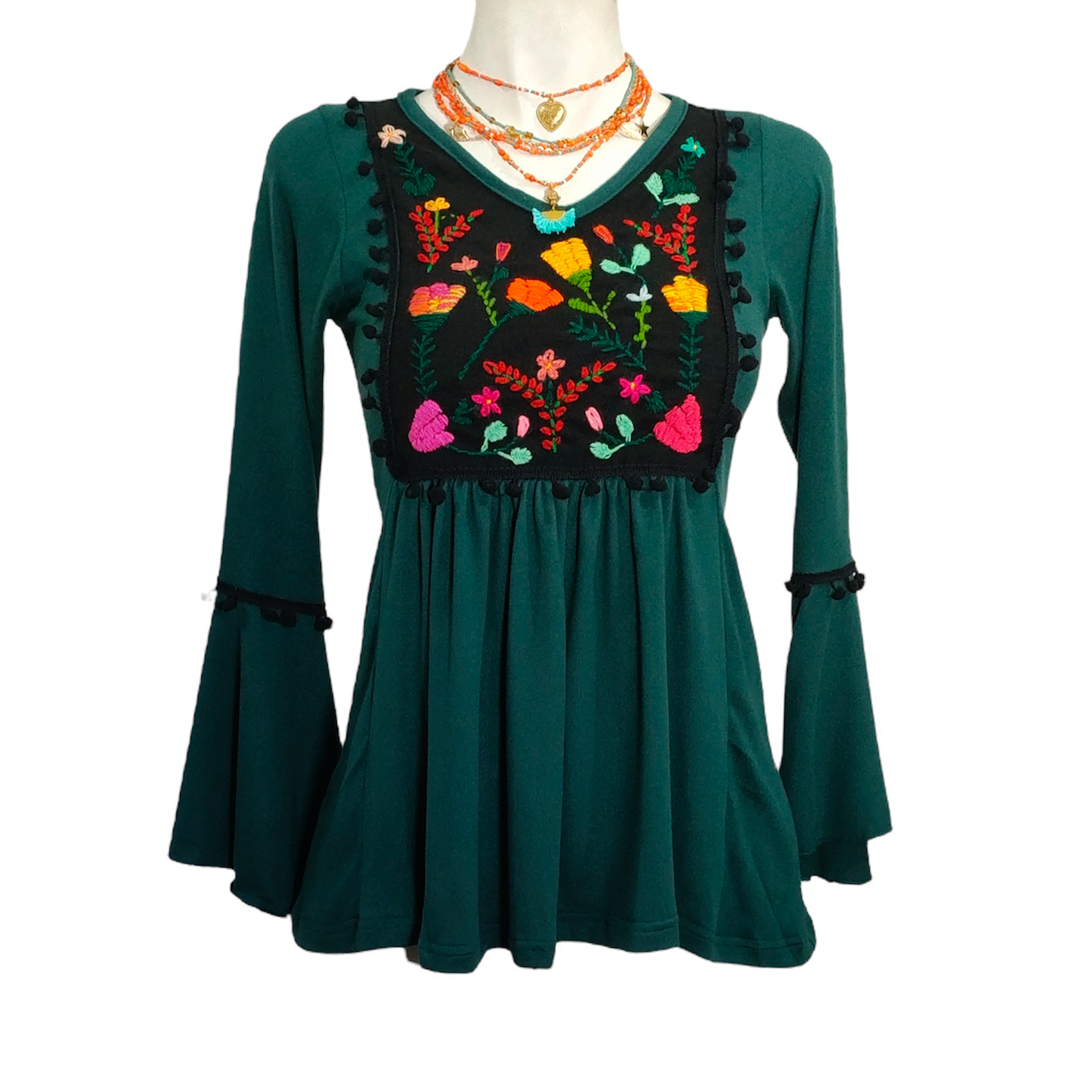 Blusa Toscana tejido verde bordado