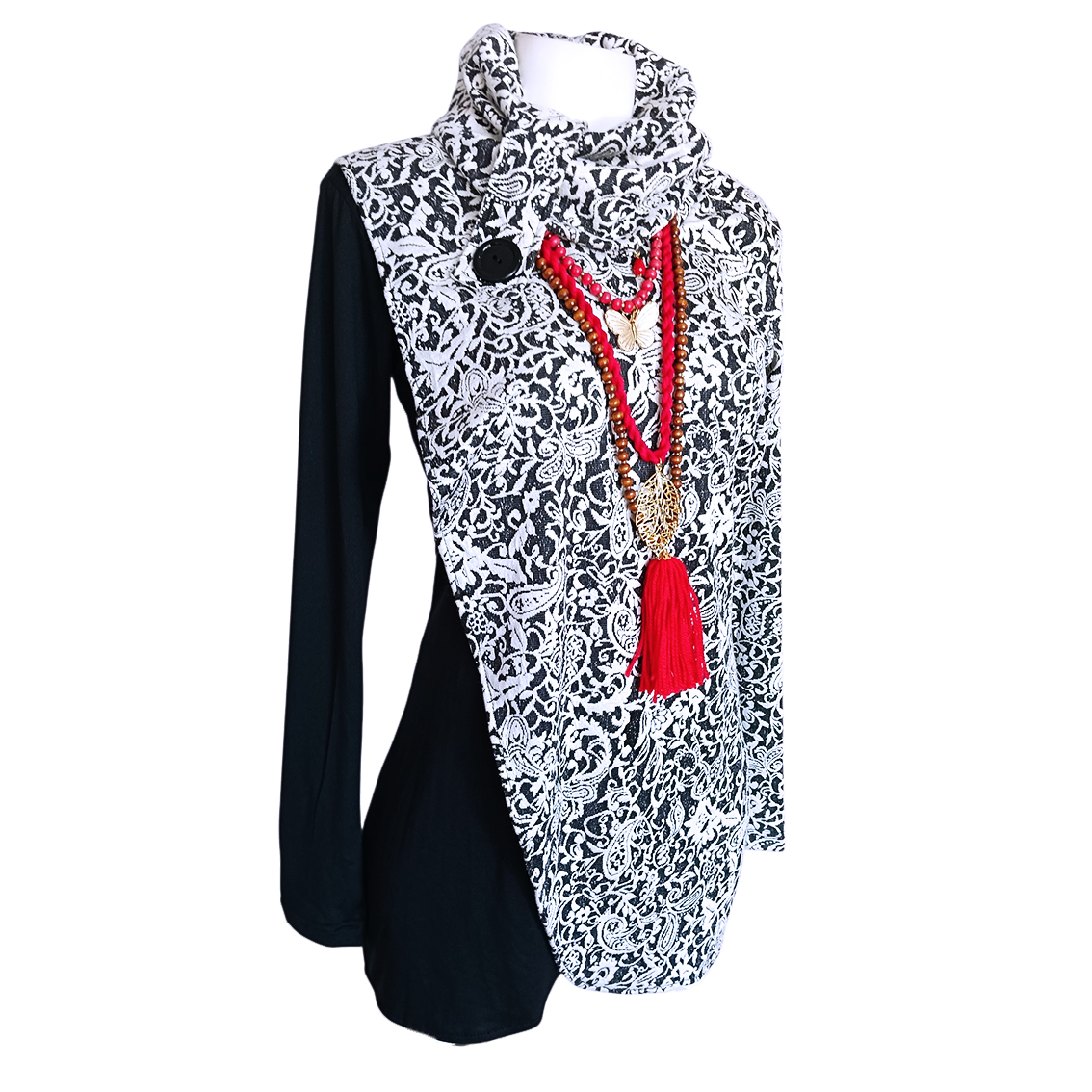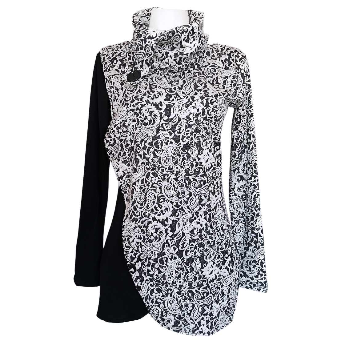 Color negro, tejido brocado.