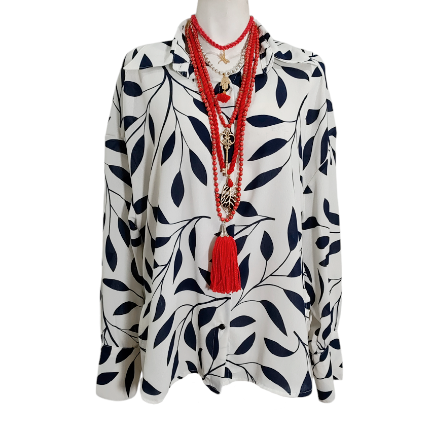 Camisa Unitalla bco hojas marino