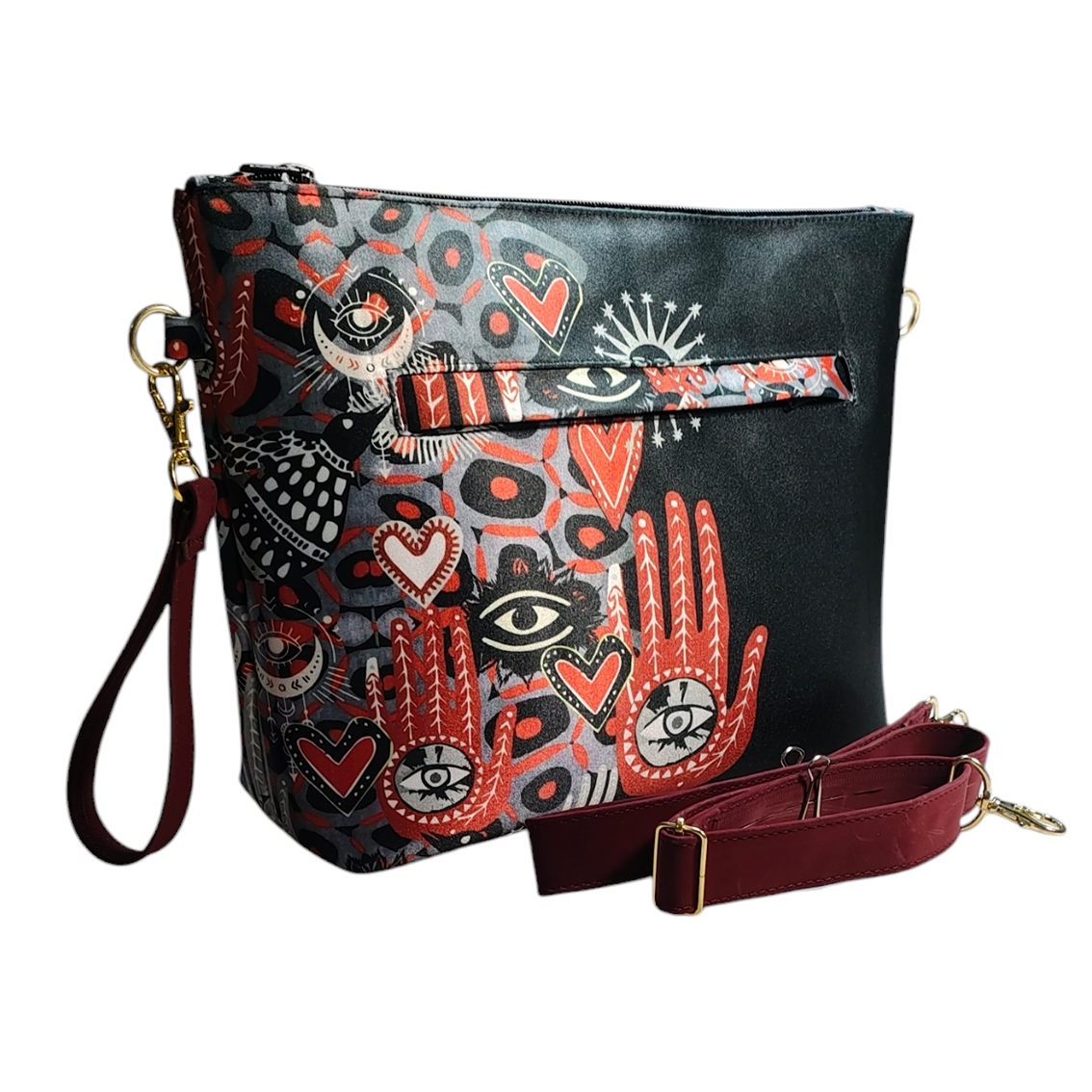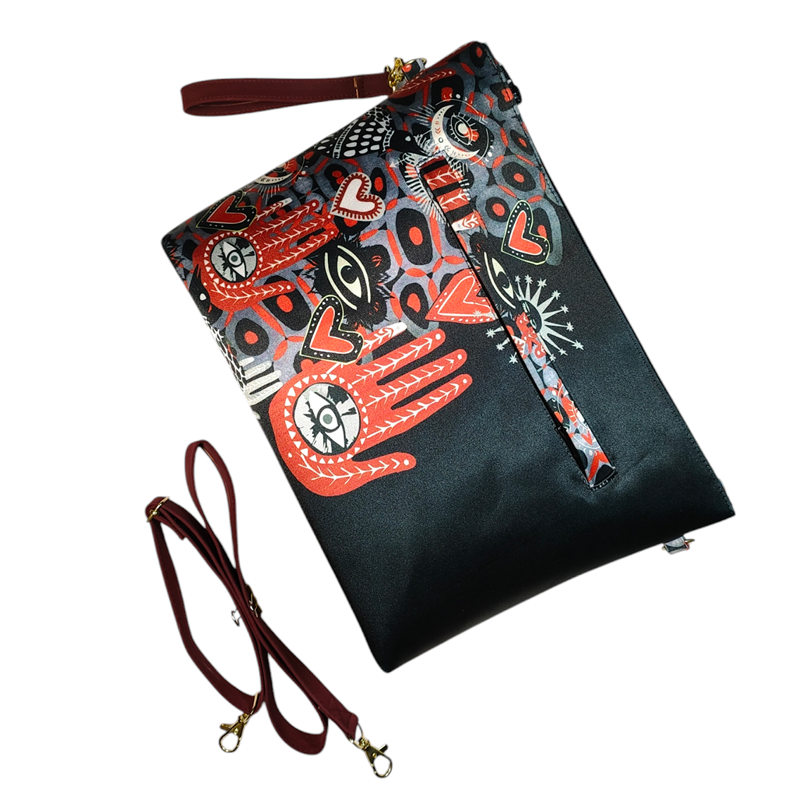 Estampado manos, ojos, corazones.