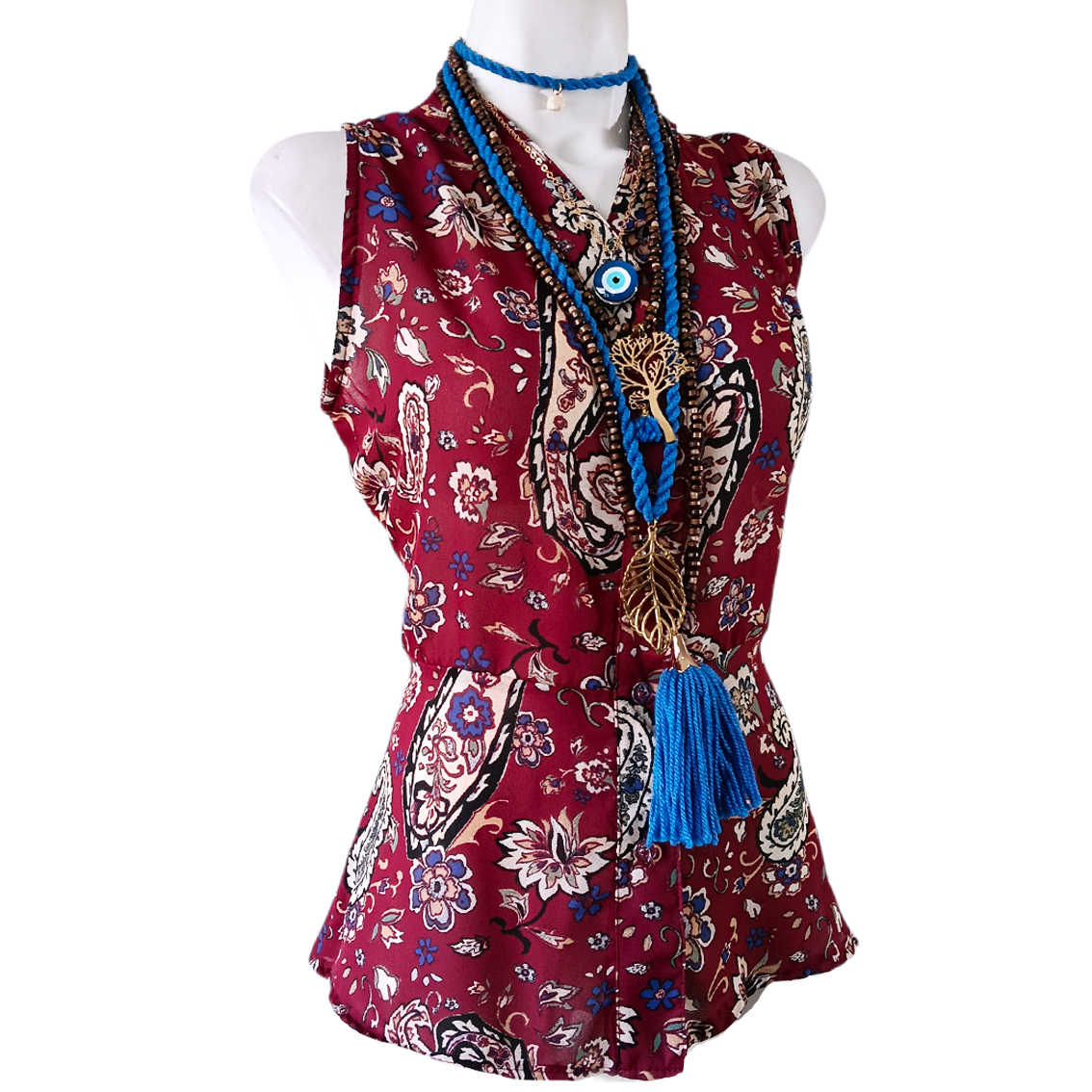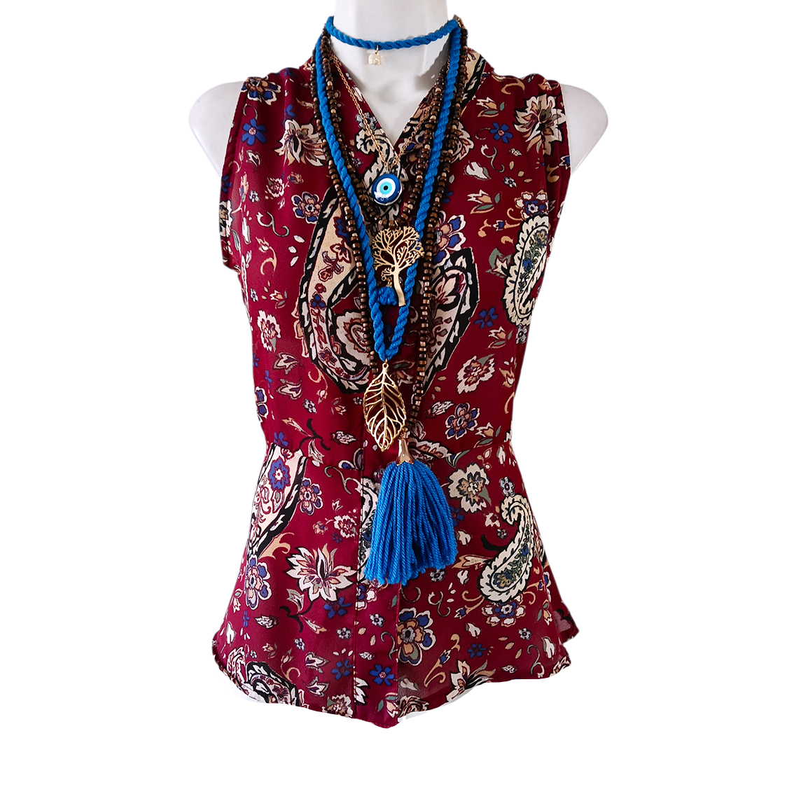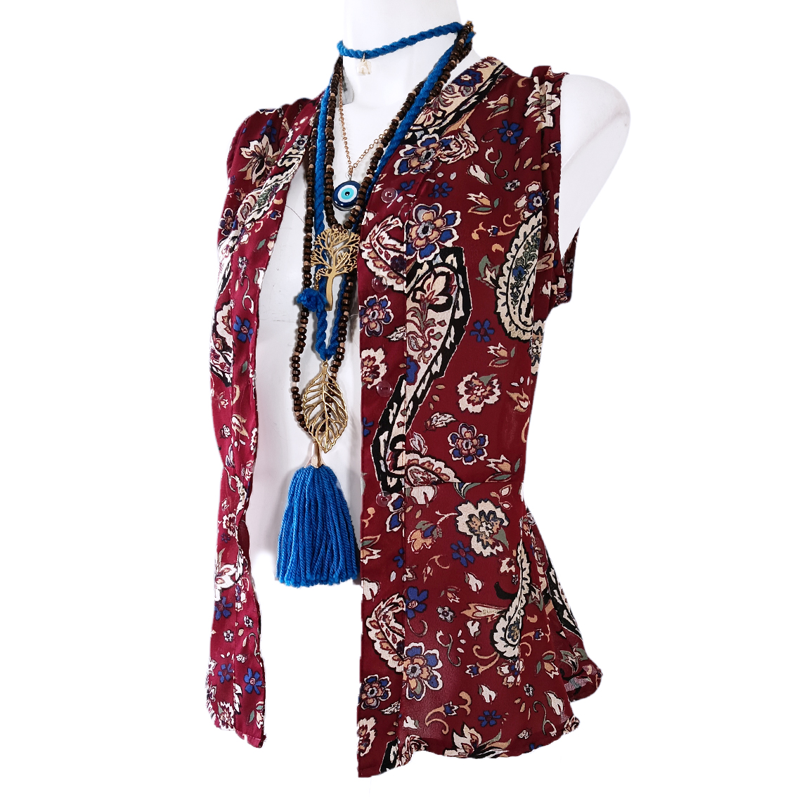 Estampado paisley, color vino.
