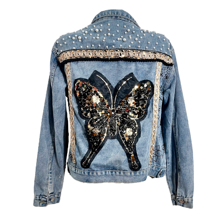 Chaleco mezclilla Boho&Free mariposas lentejuelas