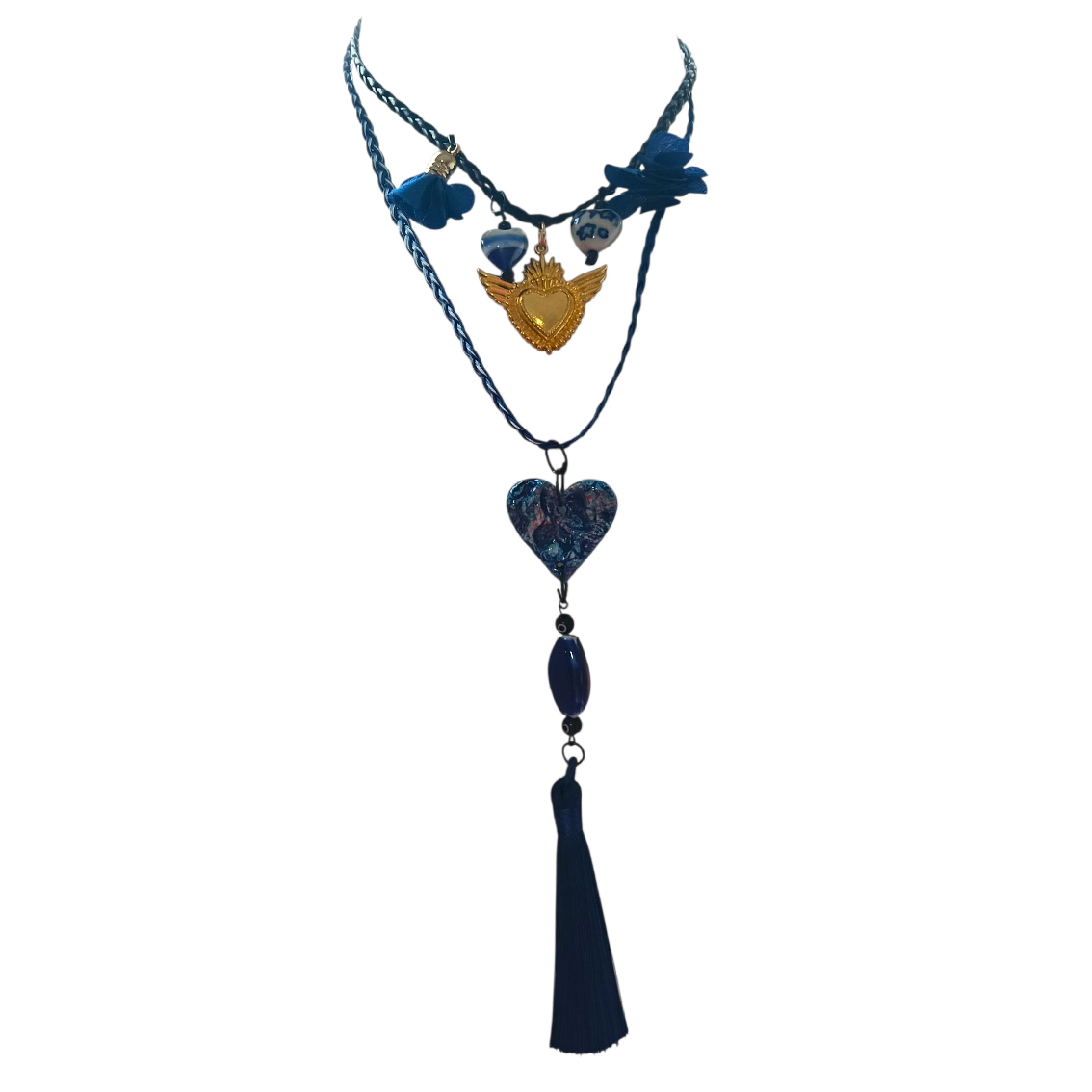 Collar Boho&Free 595 azul corazón y pompón