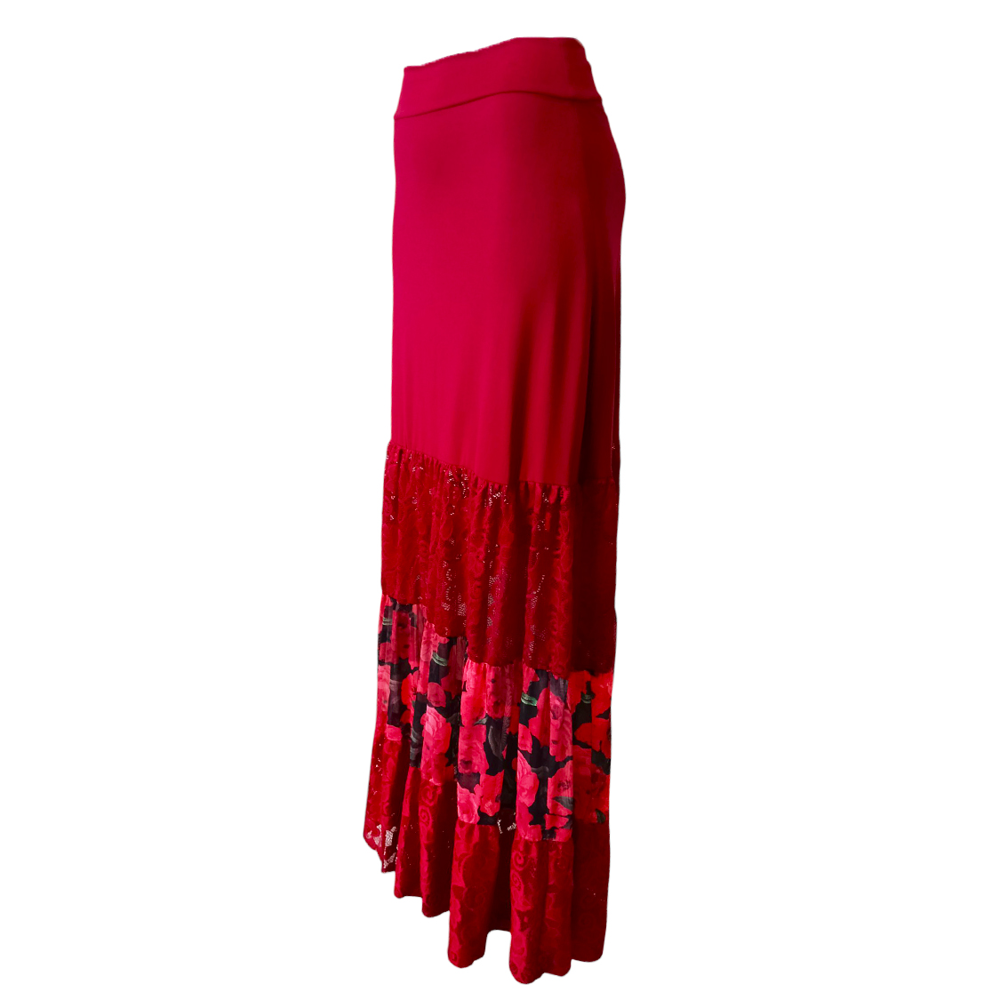 Falda Sirena rojo flores