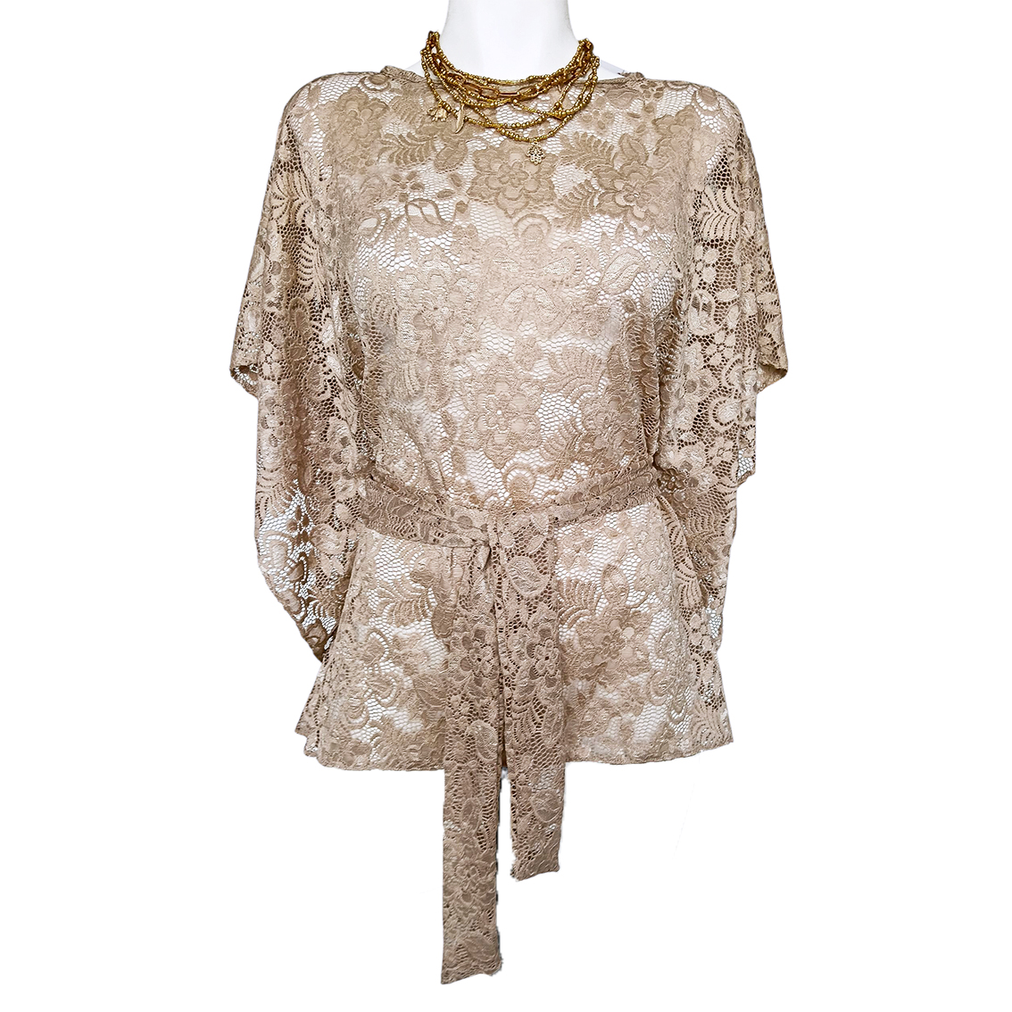 Kimono Sencillo encaje arena