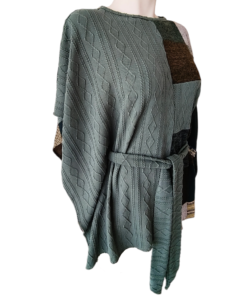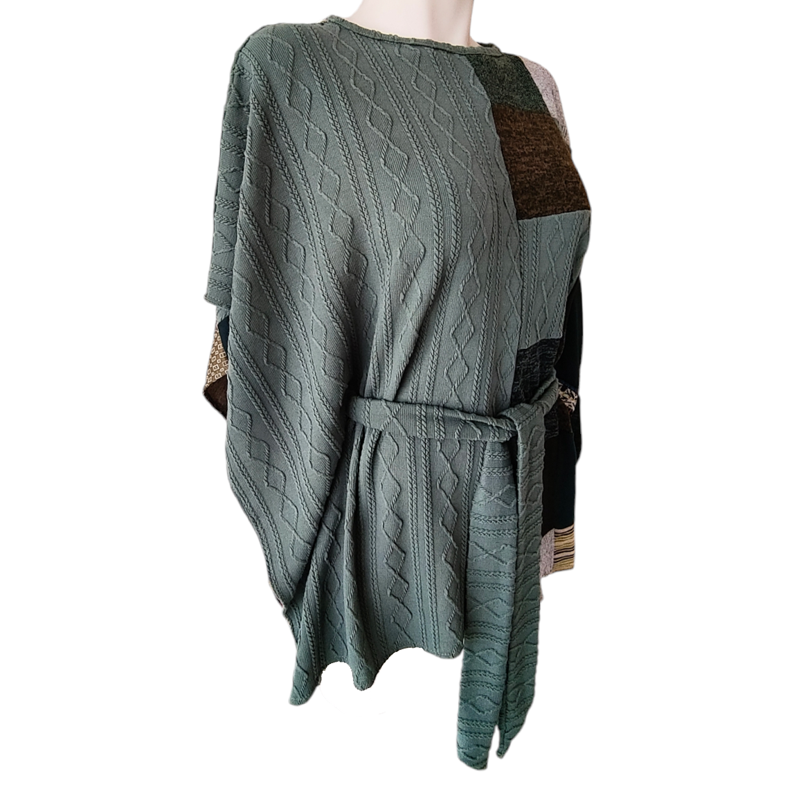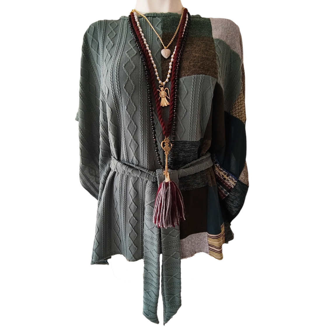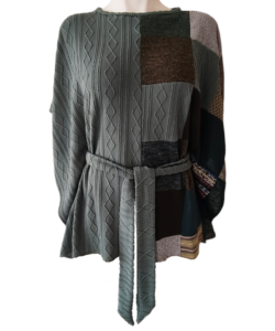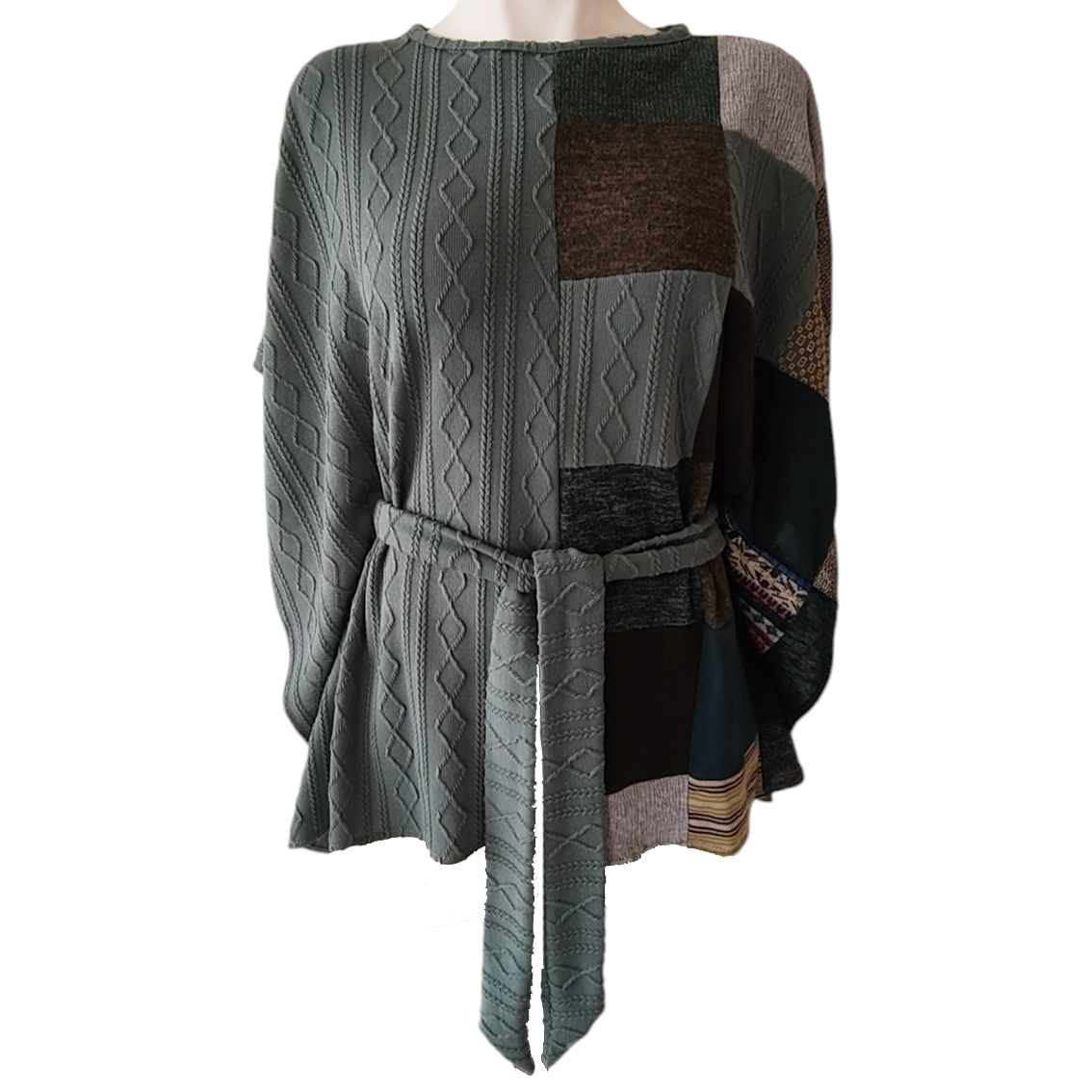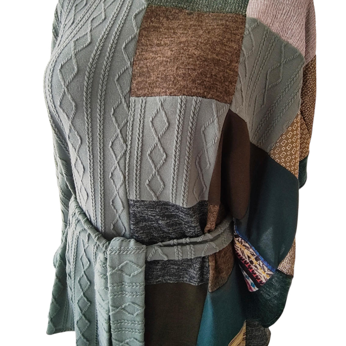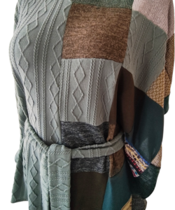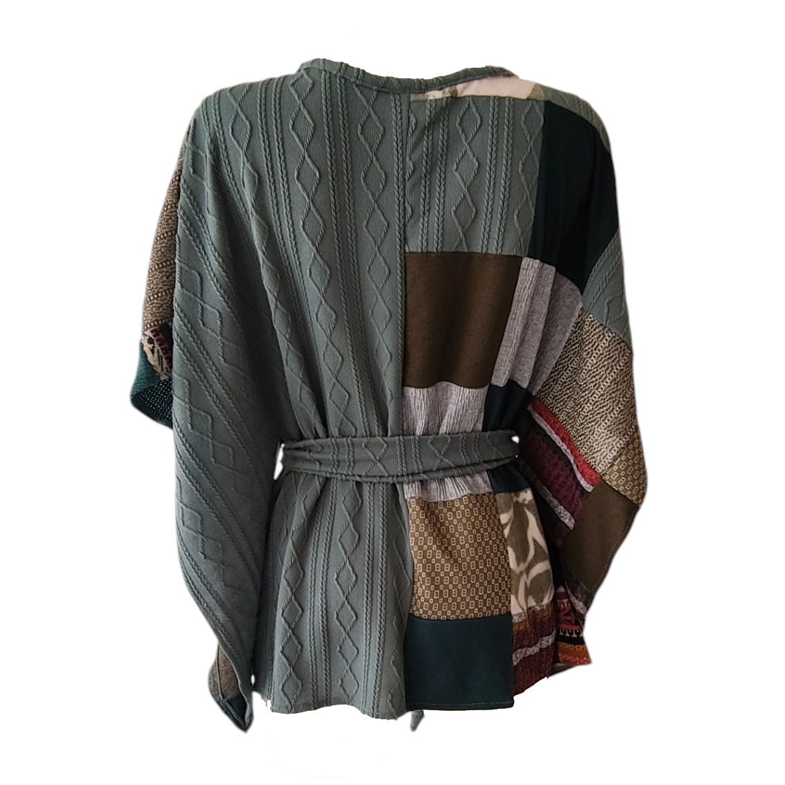 Color verde de un lado y trabajo patchwork del otro.