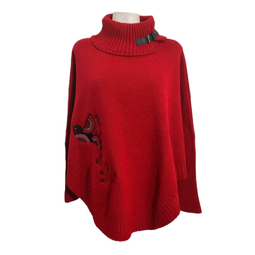 Poncho Bordado Karma rojo parajota