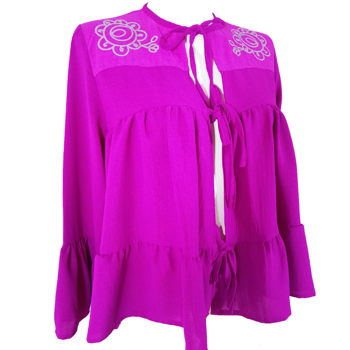 Bordado en frente y atrás en lentejuelas plata.