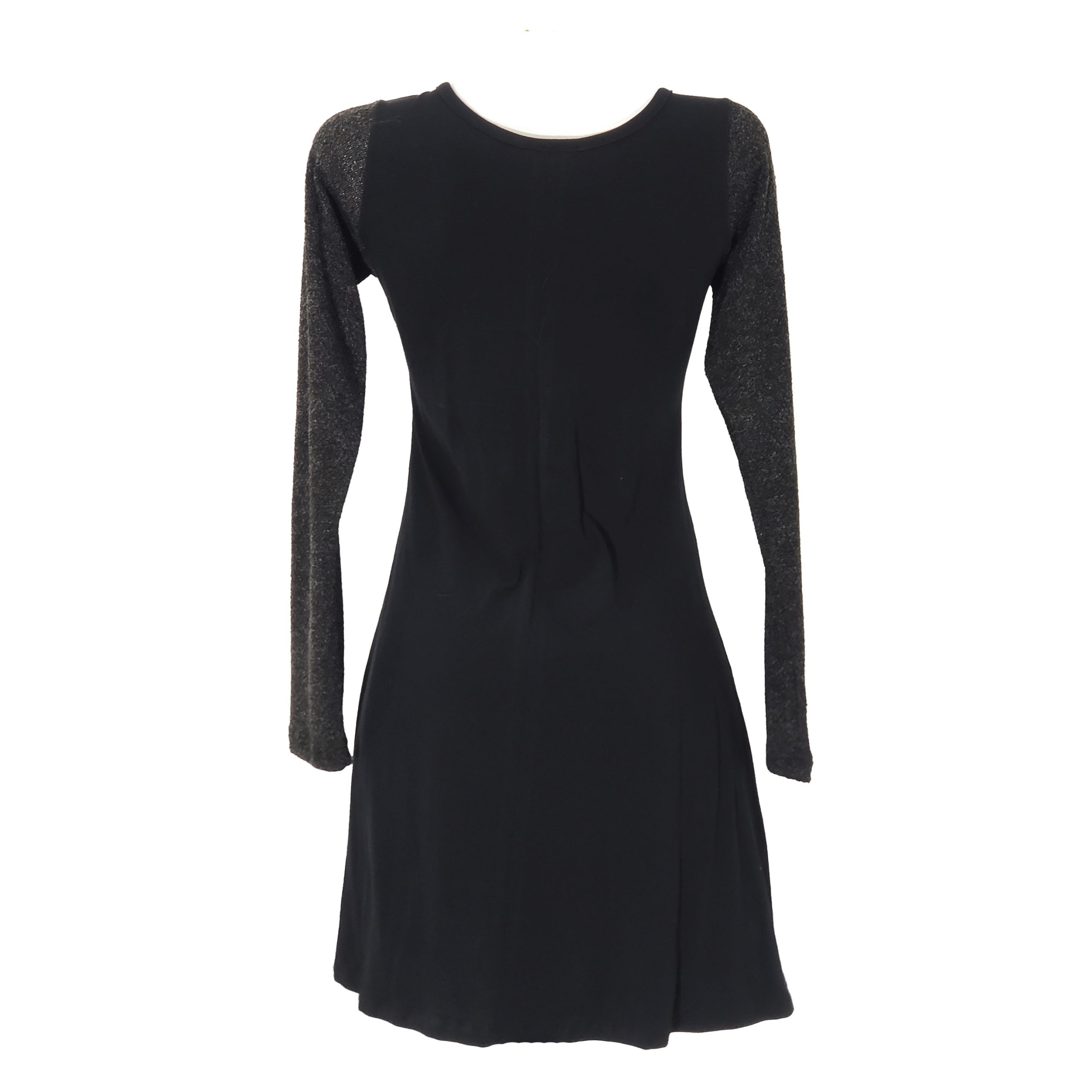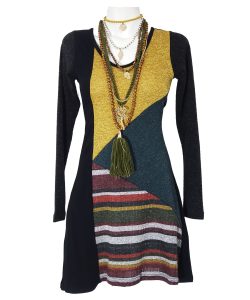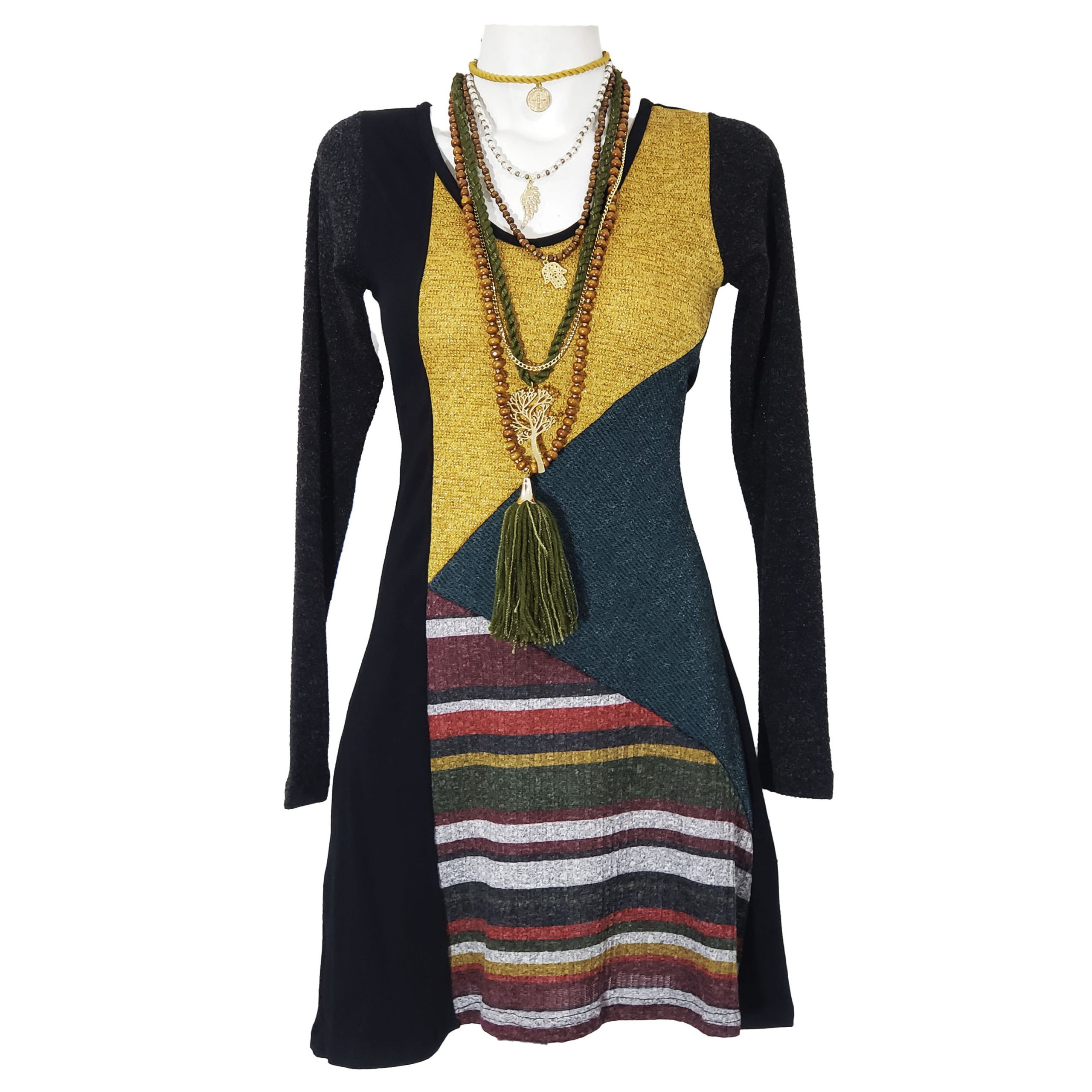 Vestido simona corto manga larga , con diviciones de diferentes estampados y colores