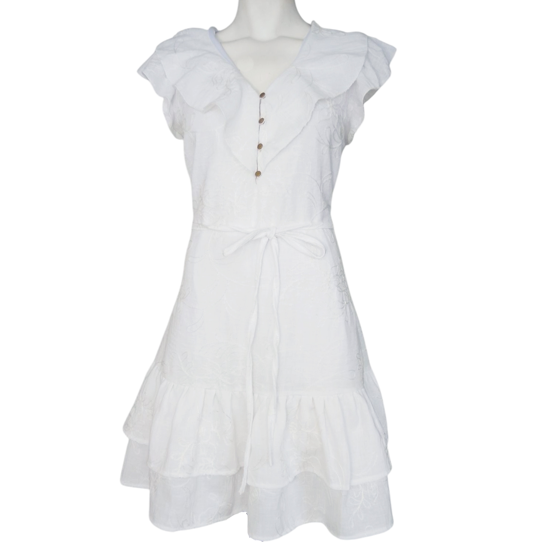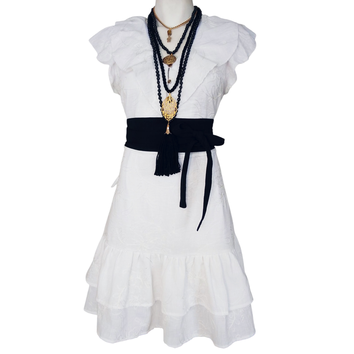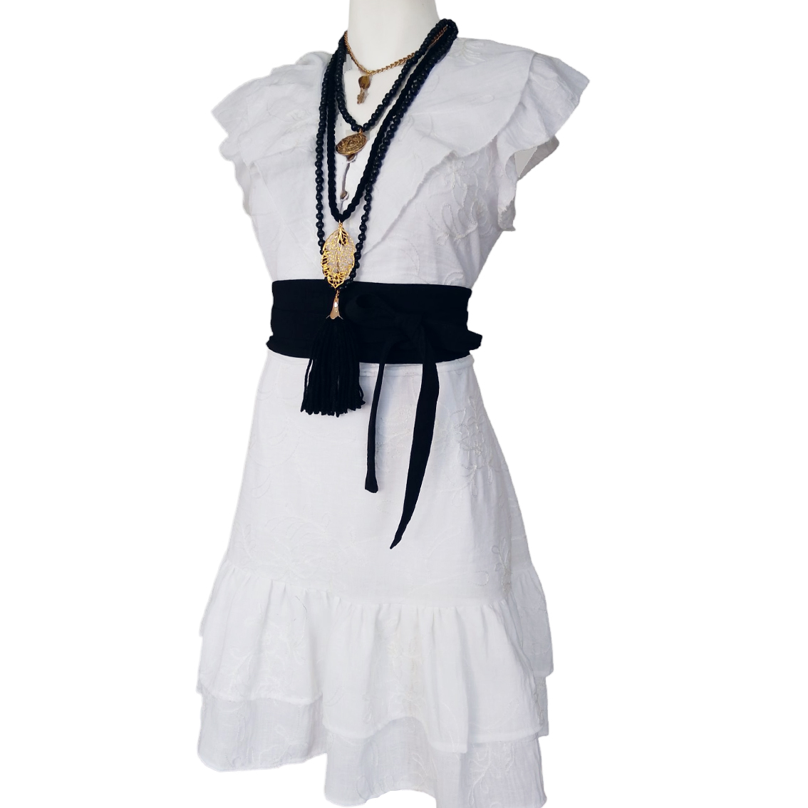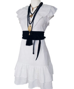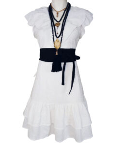 Cinta decoratiba y ajustable en cintura.