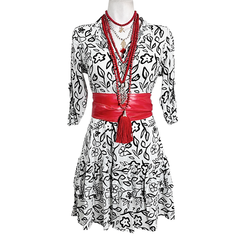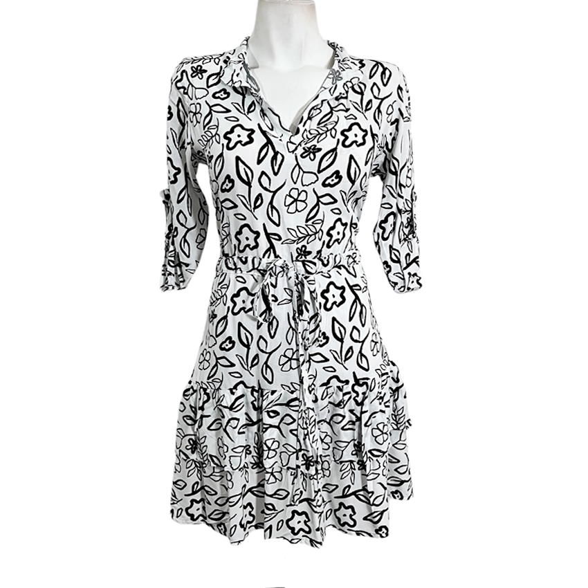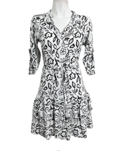 Vestido Angie Olan bco trazo flores