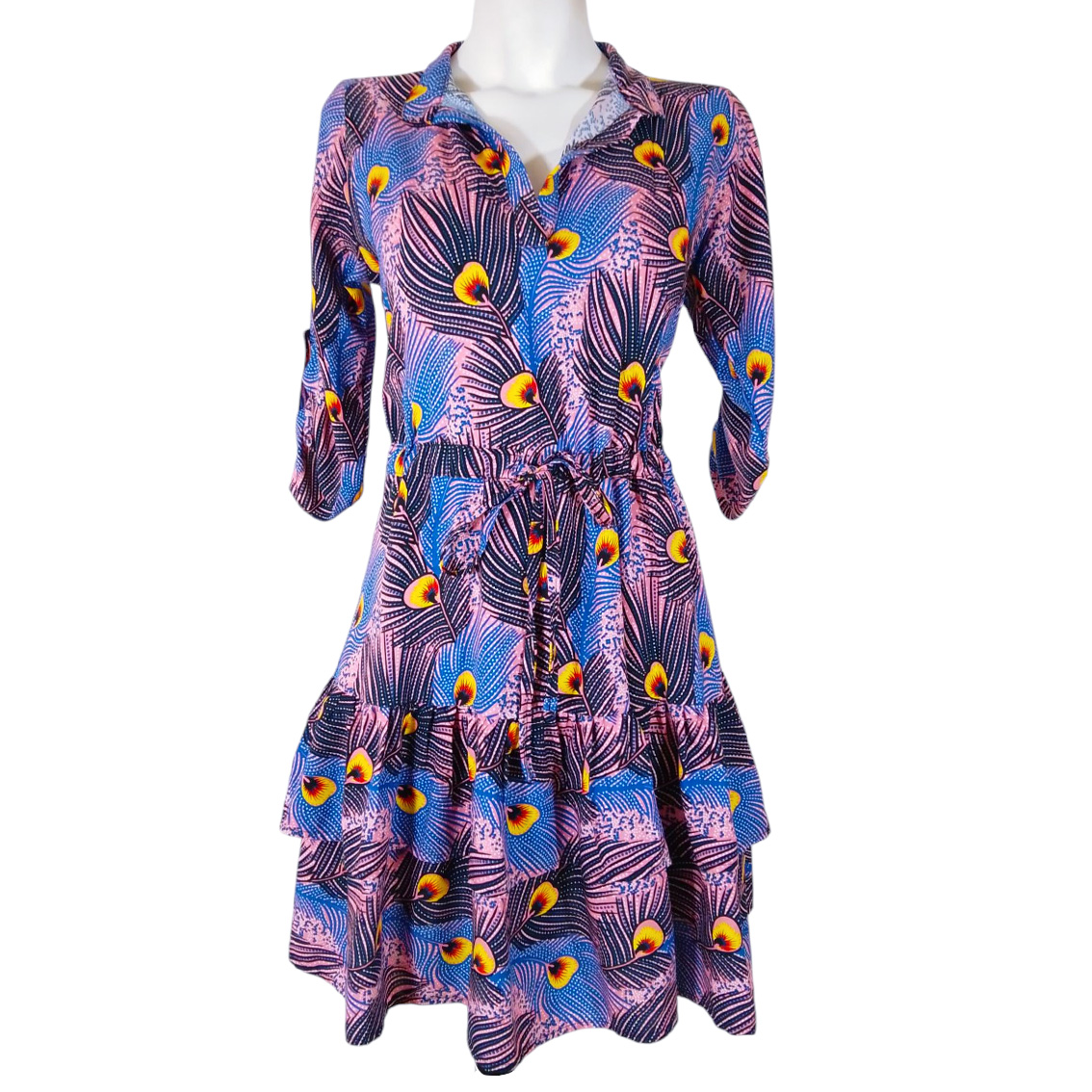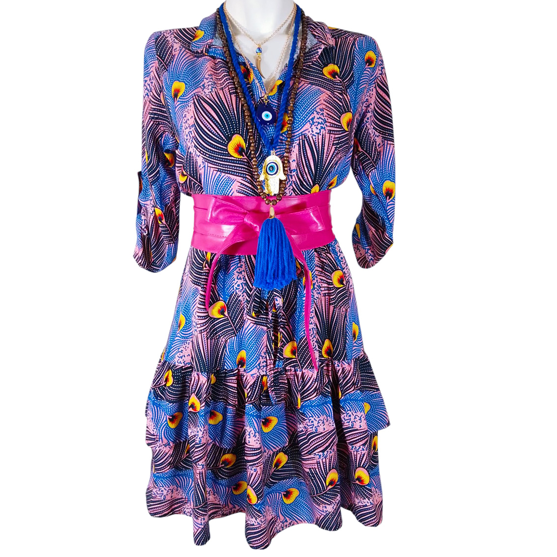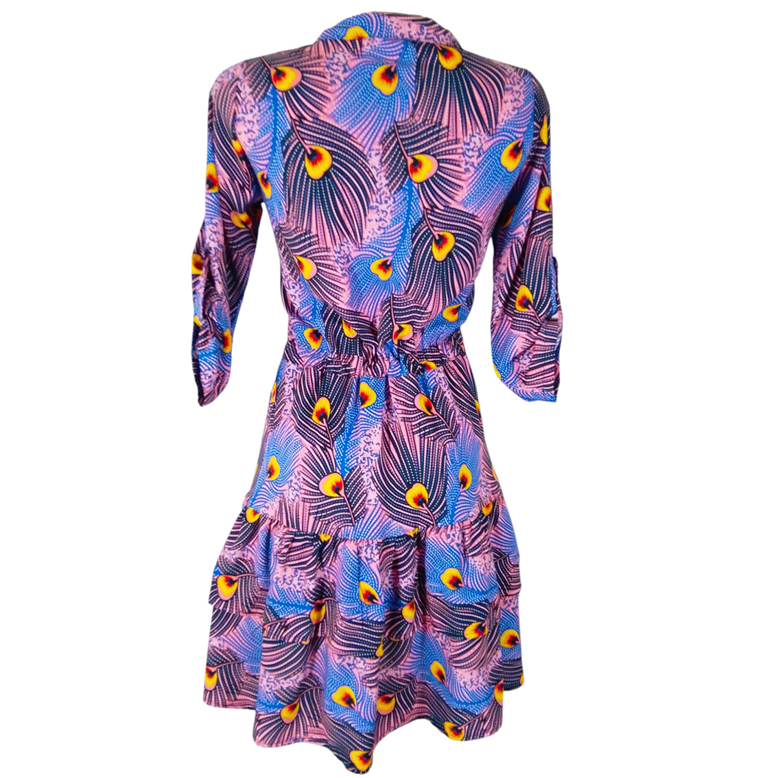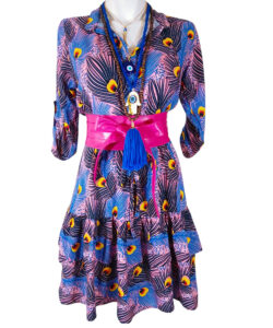 Estampado plumas pavorreal azul rosa.