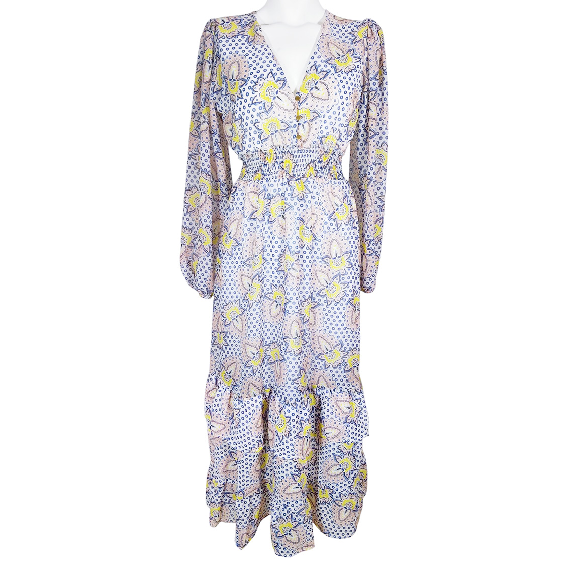 Estampado azul paisley amarillo.