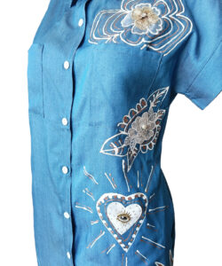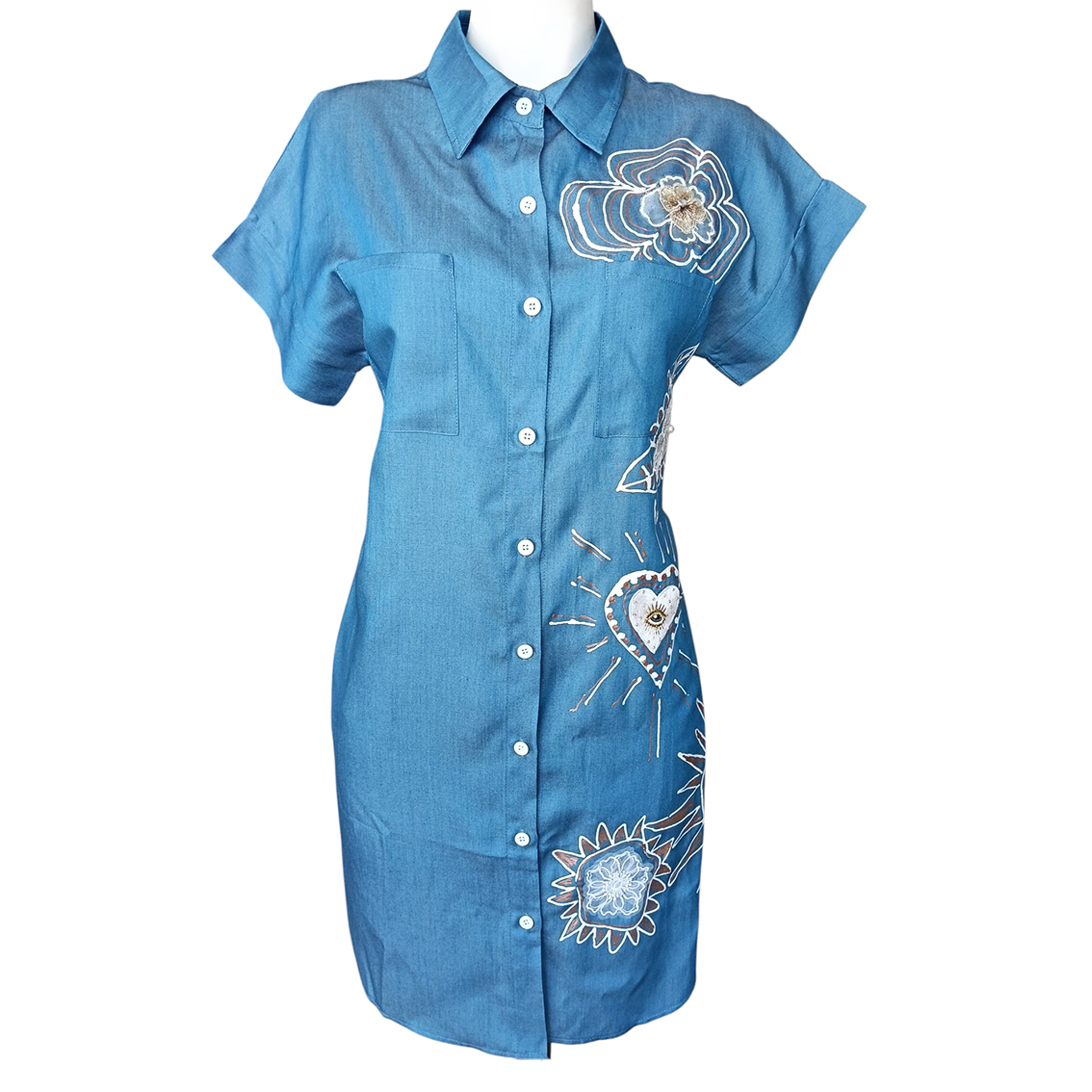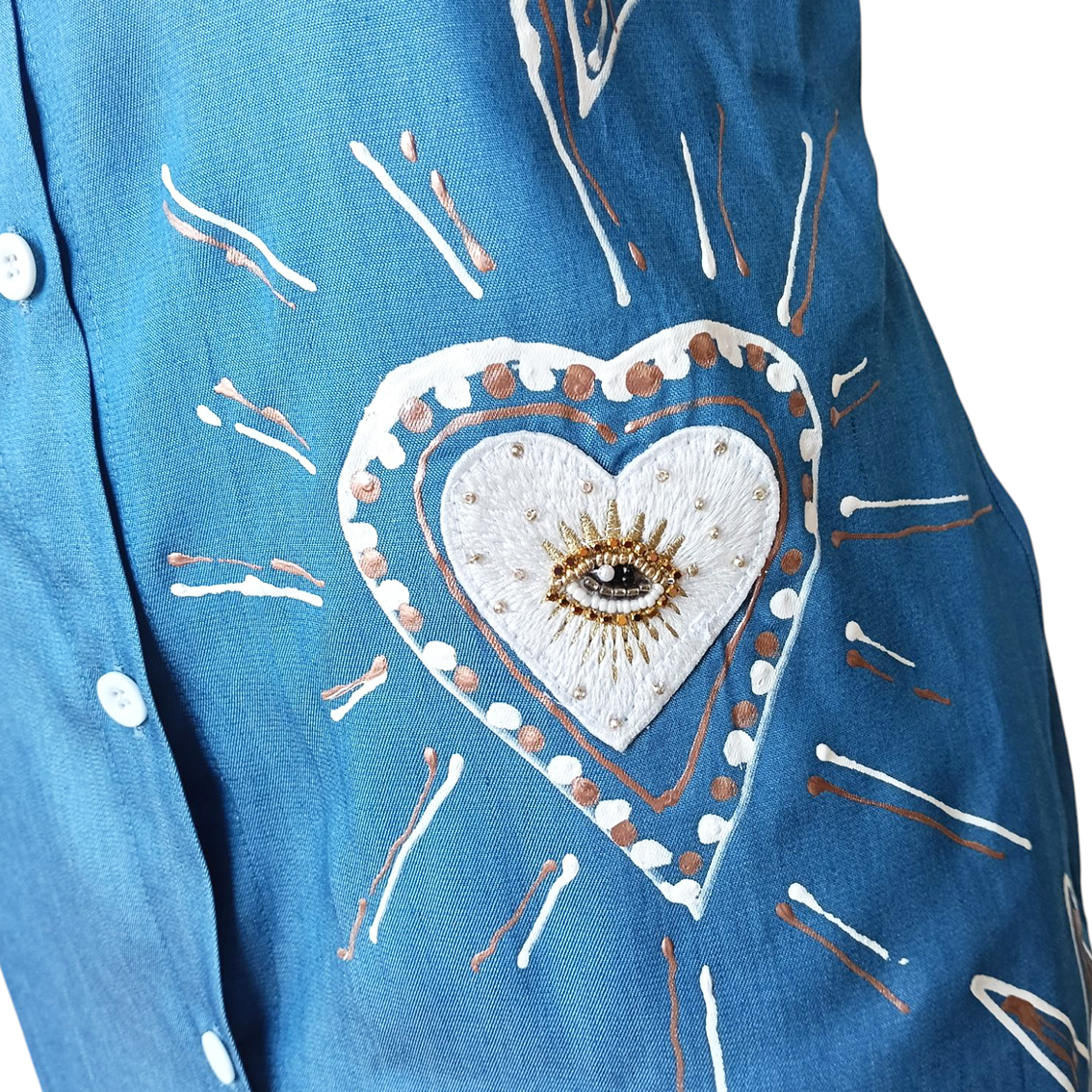 Pintado y bordado a mano.