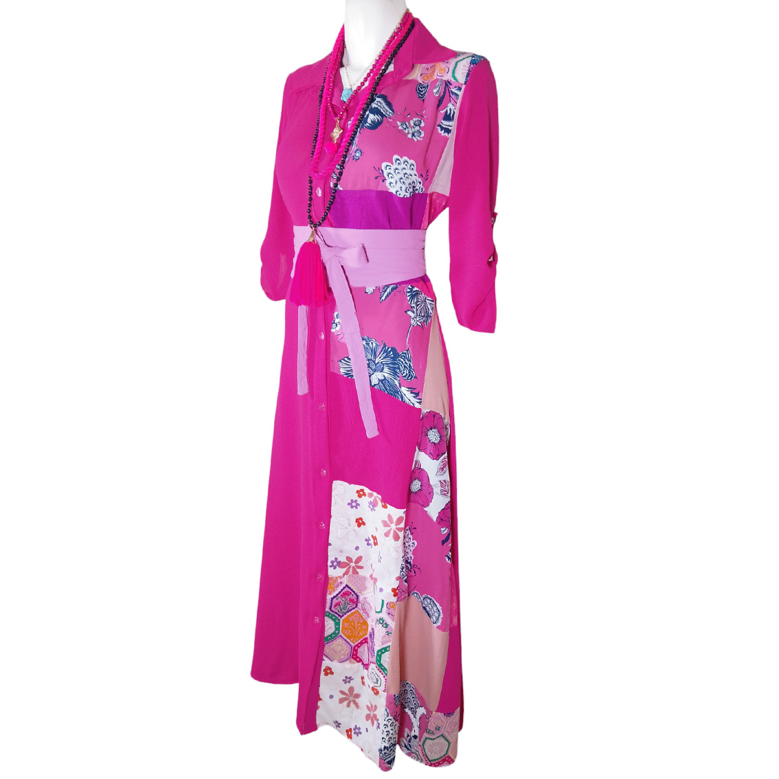 Arte patchwork en costado izquierdo.