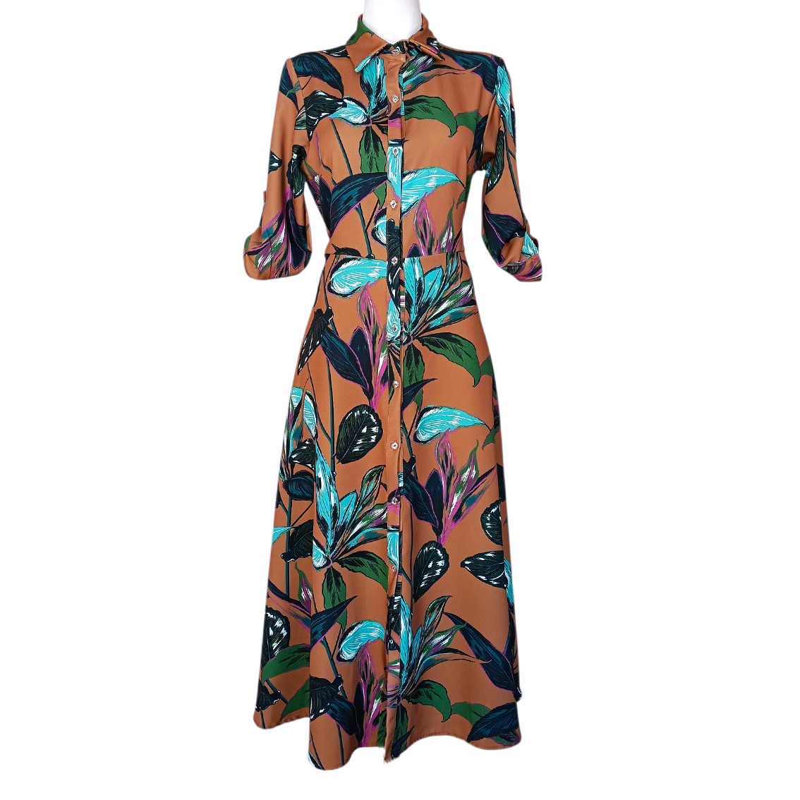 Vestido Camisero Largo Miel.