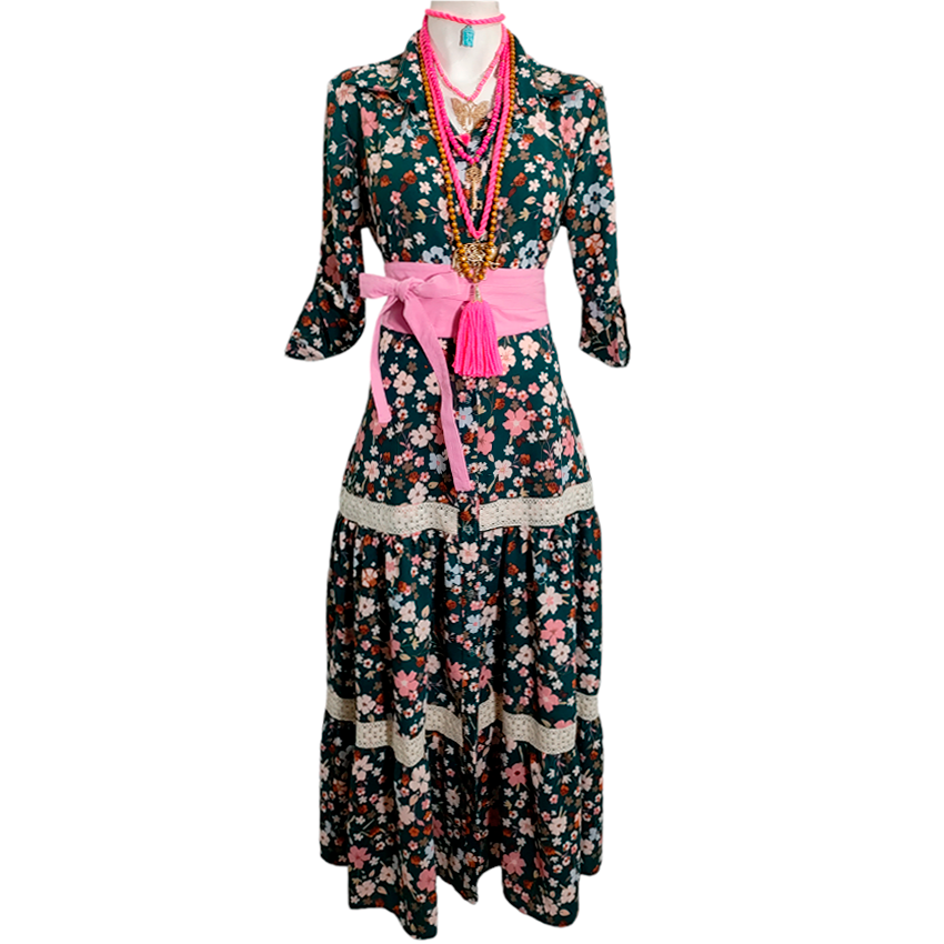 Vestido Camisero Miel verde f rosa