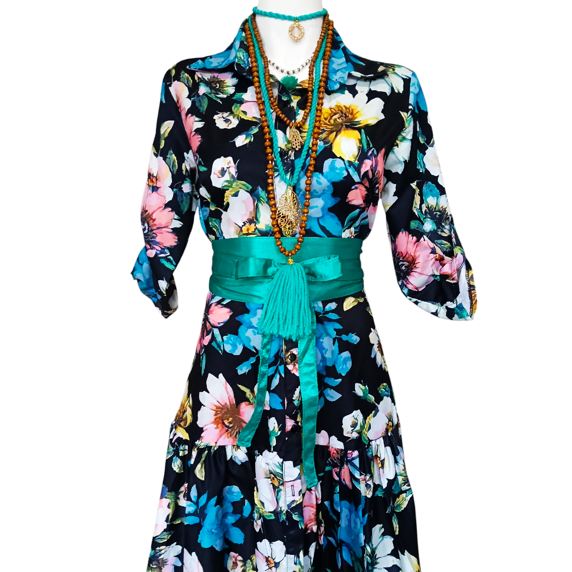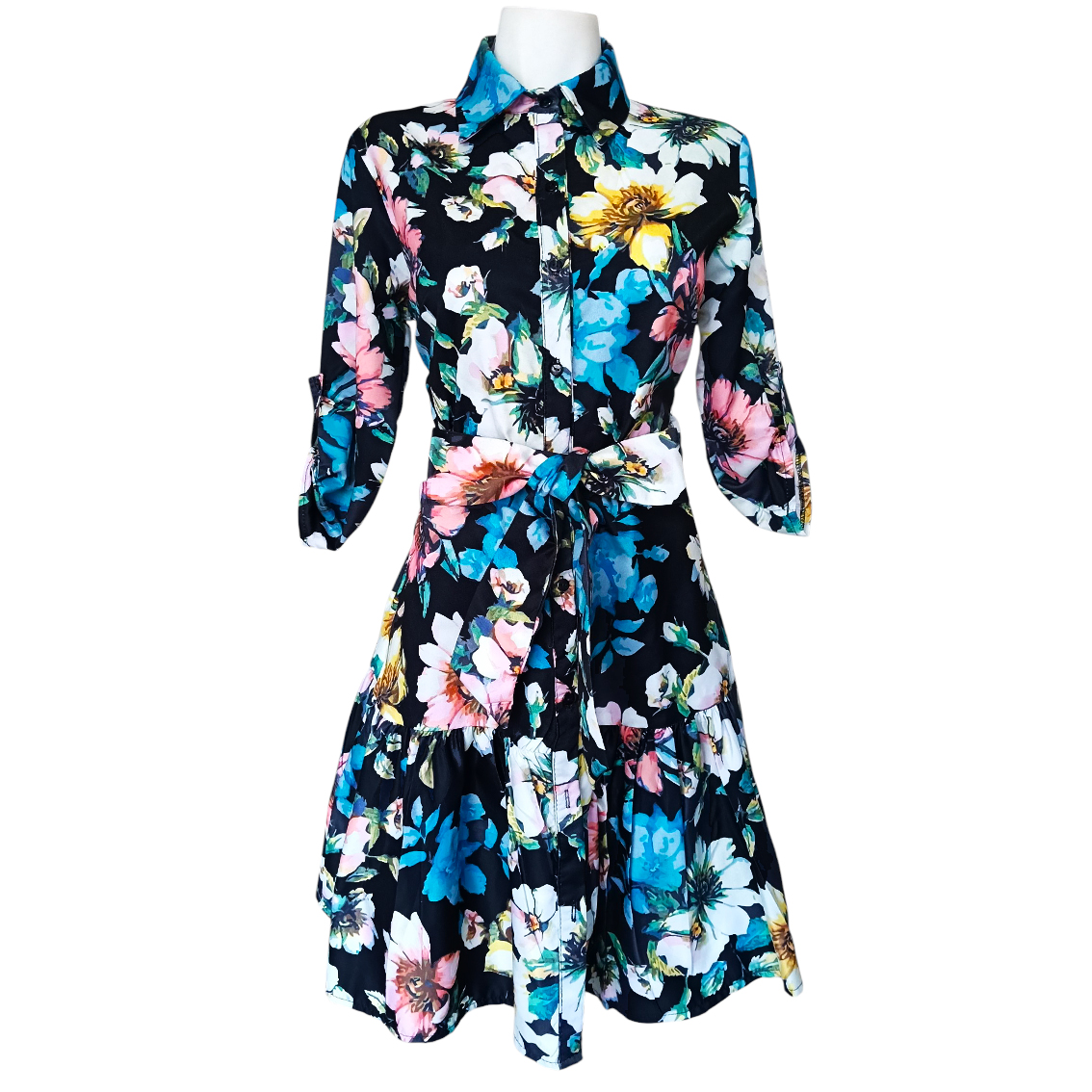 Color negro, estampado floral.