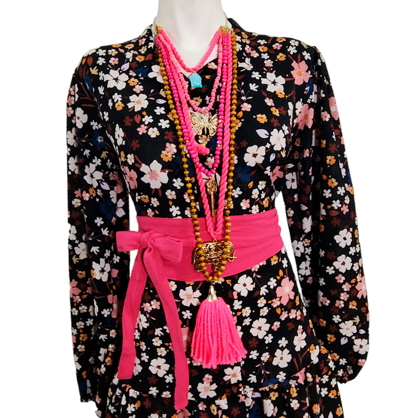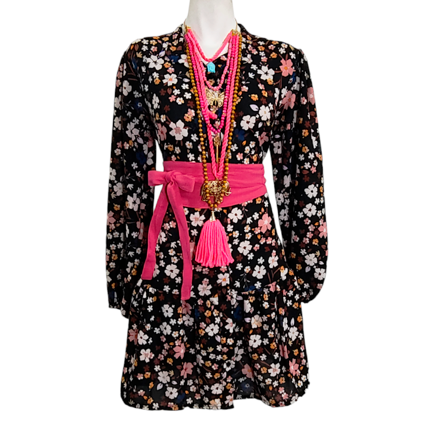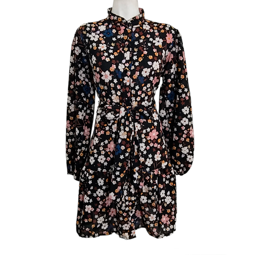 Vestido Camisero Talavera negro floral rosita