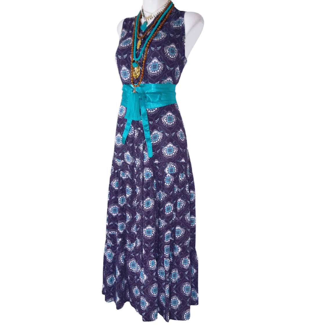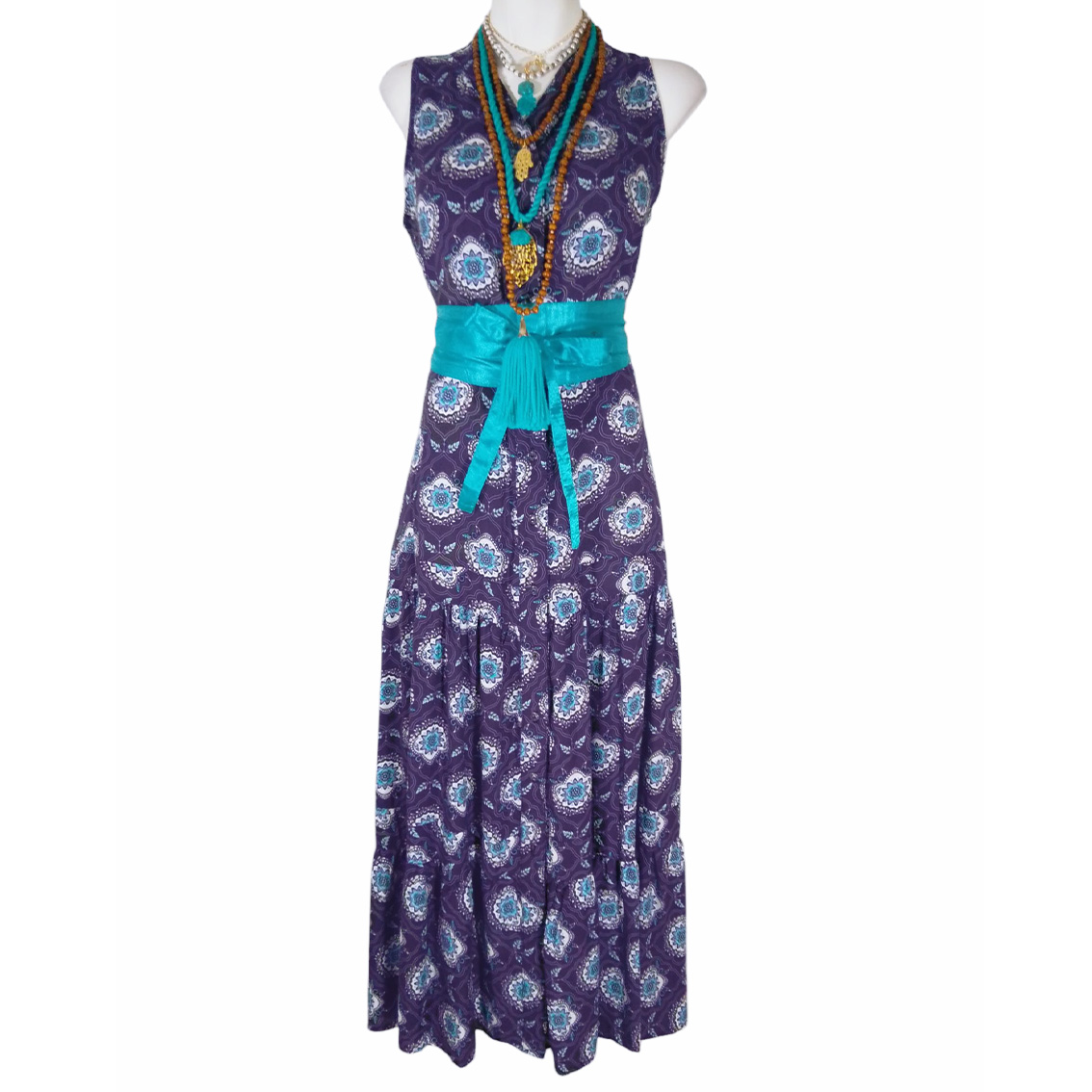 Estampado morado, turquesa.