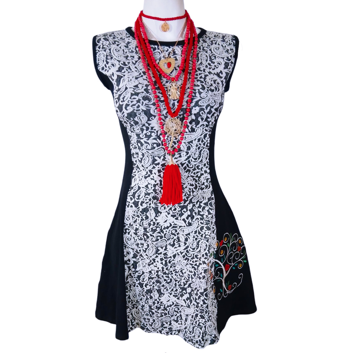 Bordado árbol de la vida en frente y espalda.