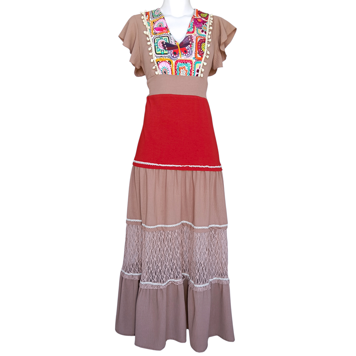 Vestido Deni largo de olanes.