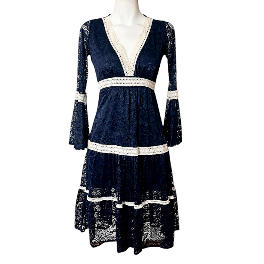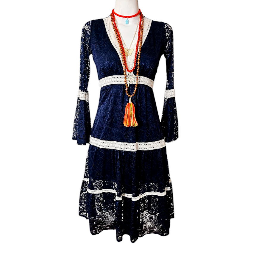 Vestido Dora Corto mcam marino encaje