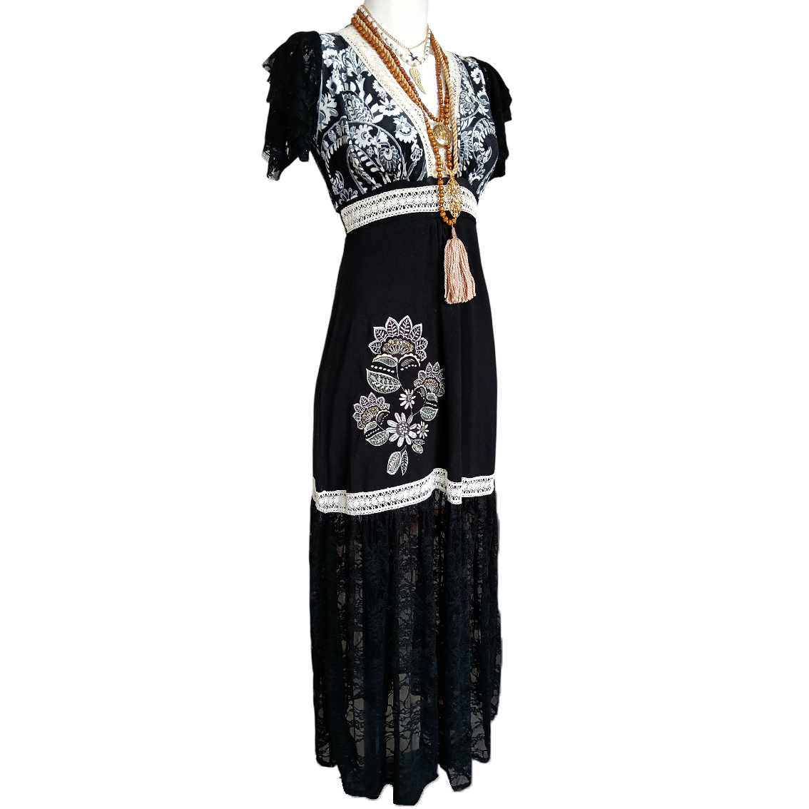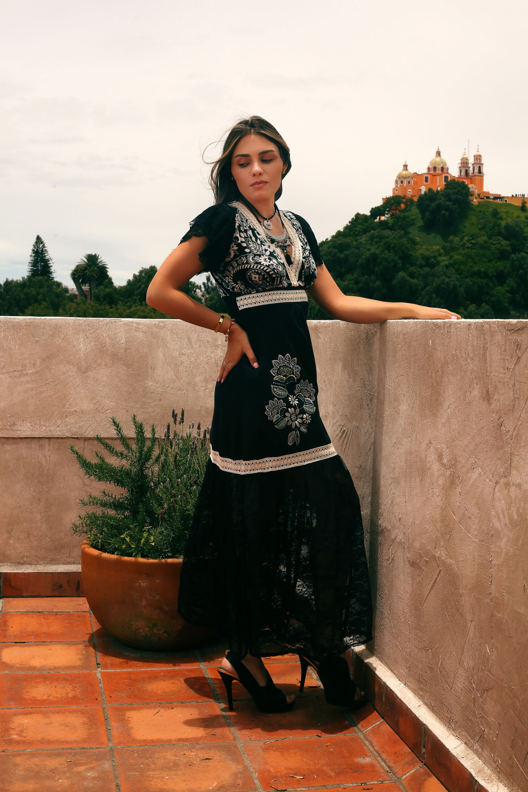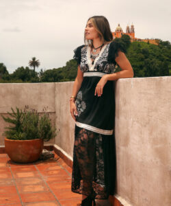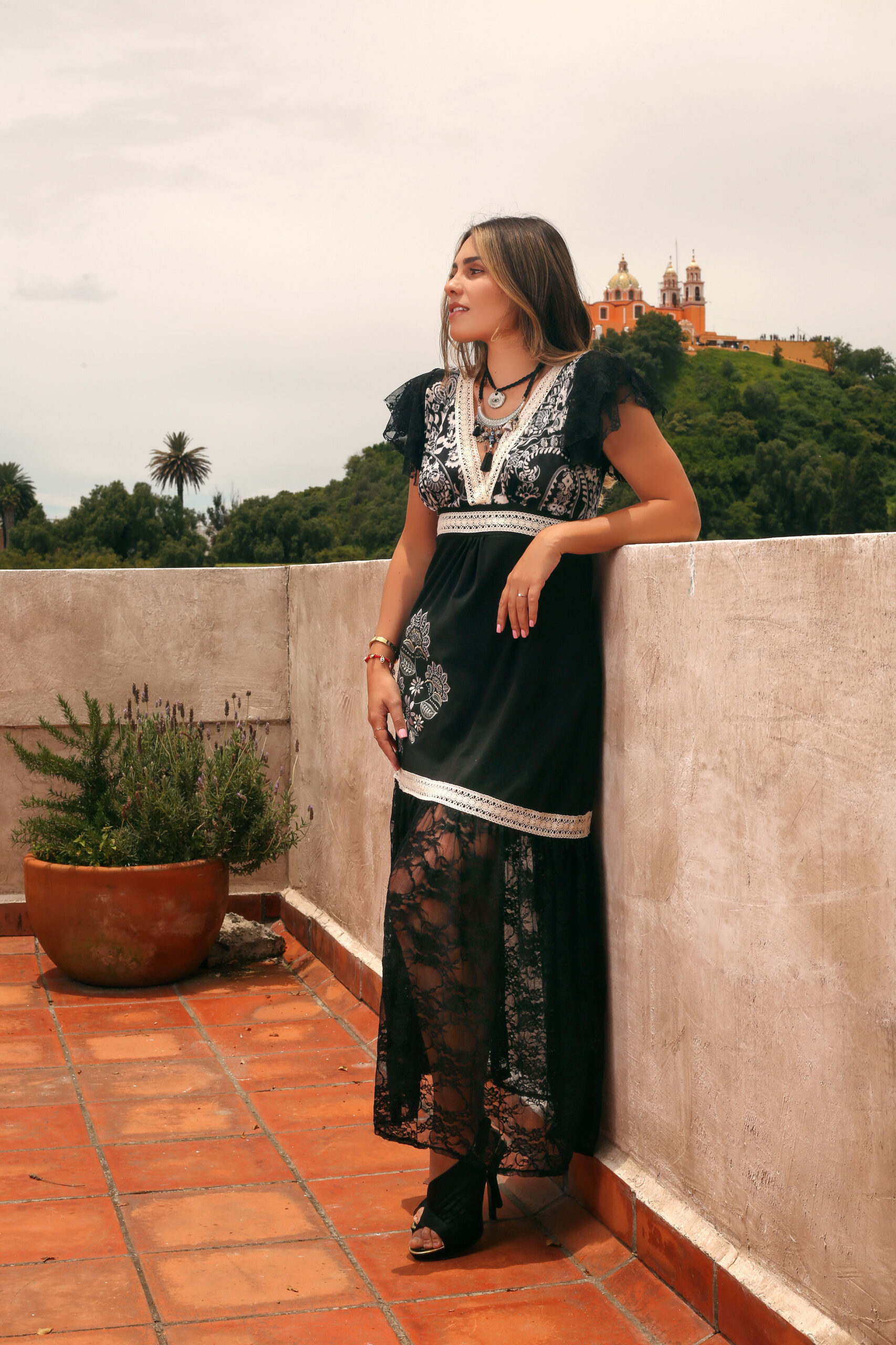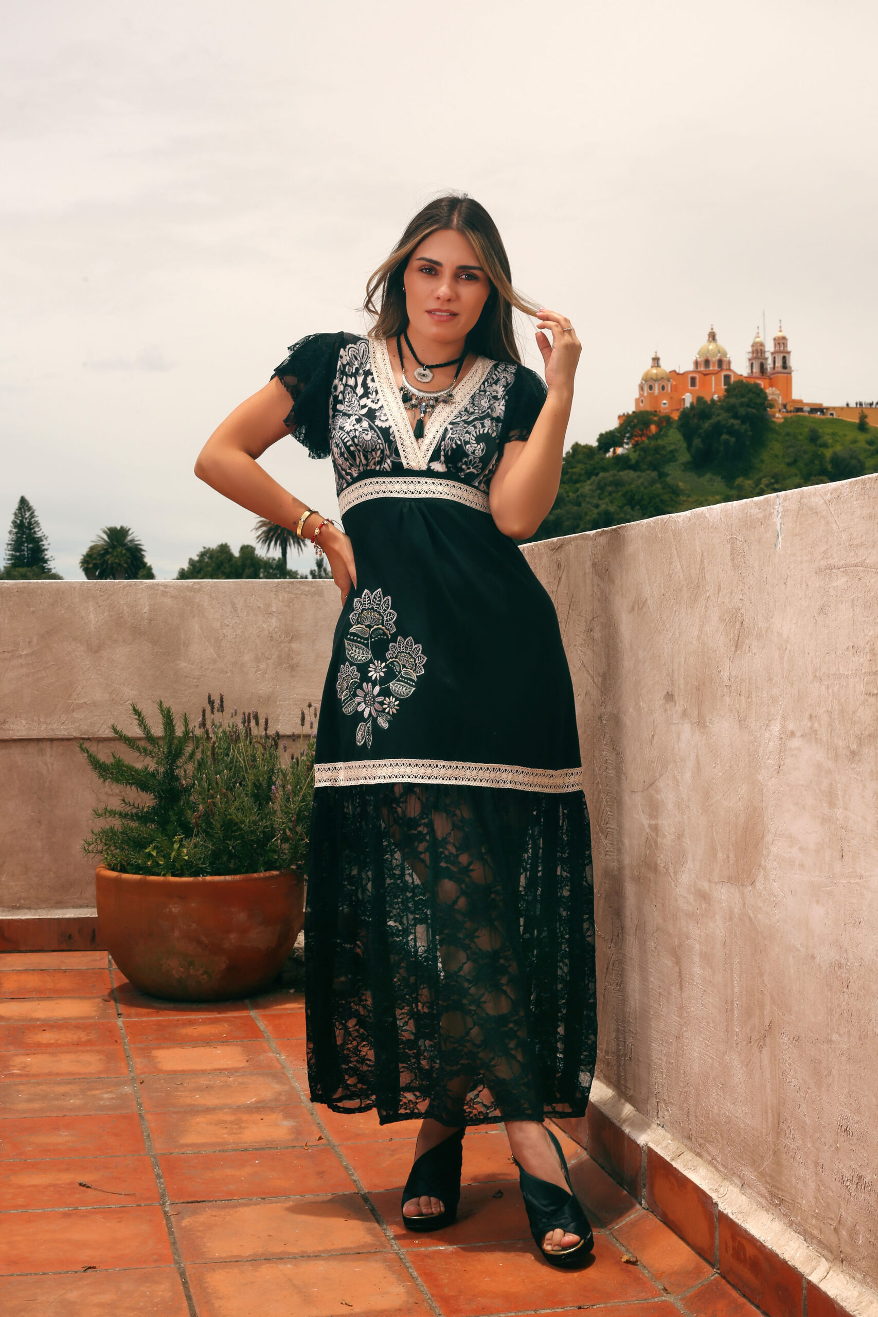 Encaje negro en faldón.