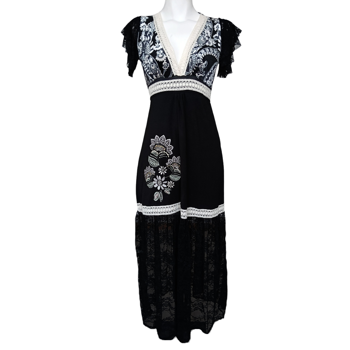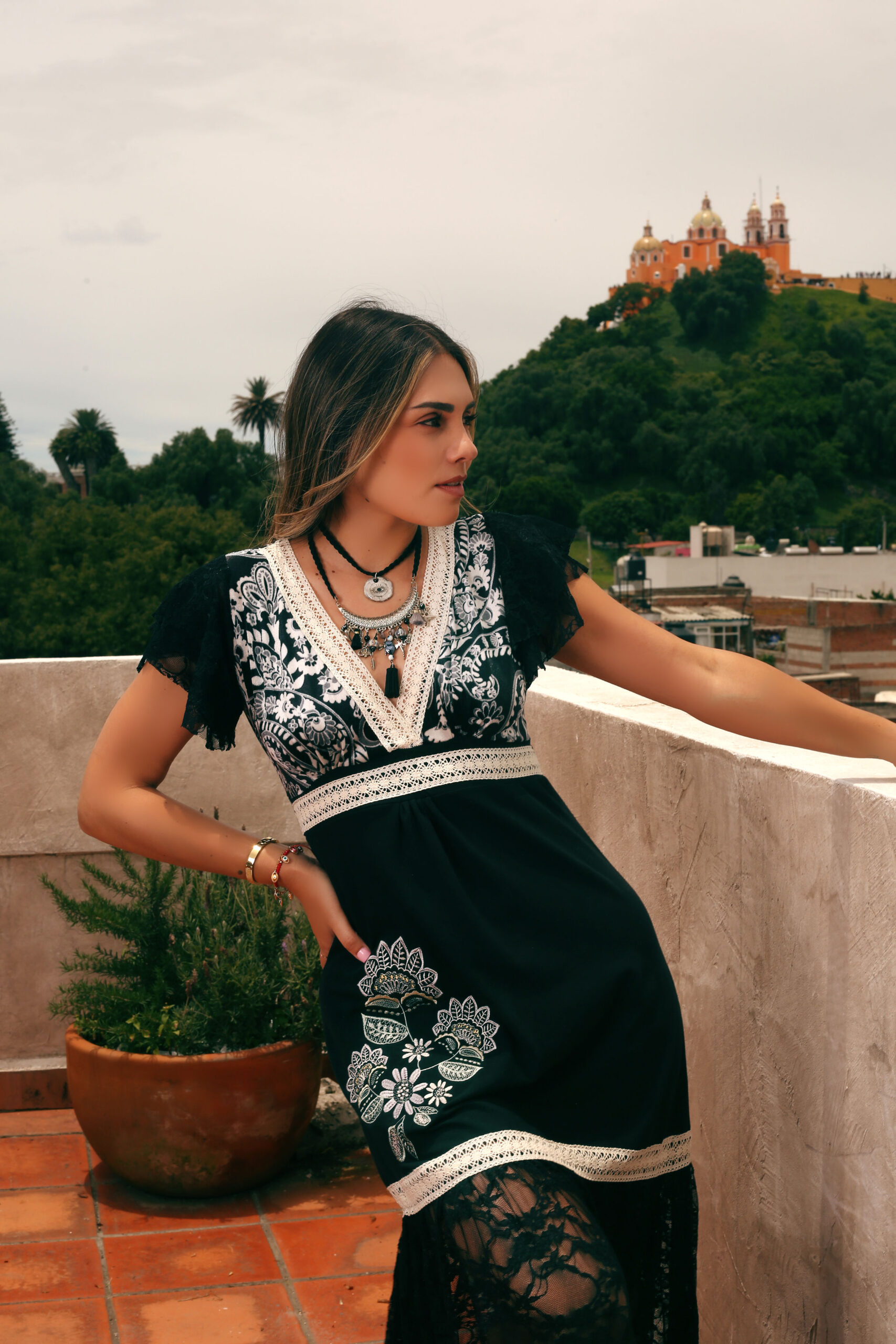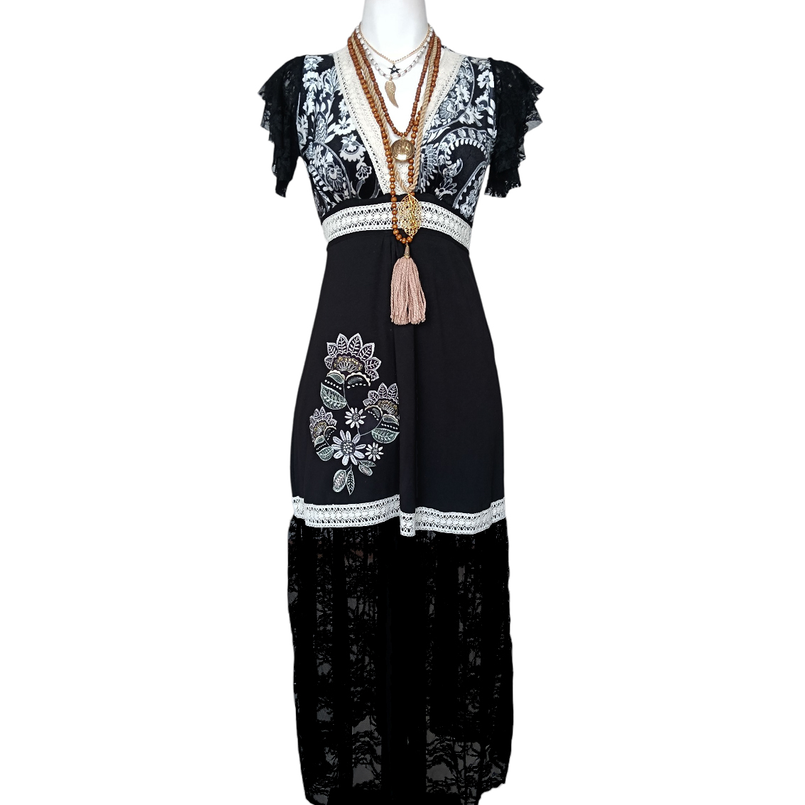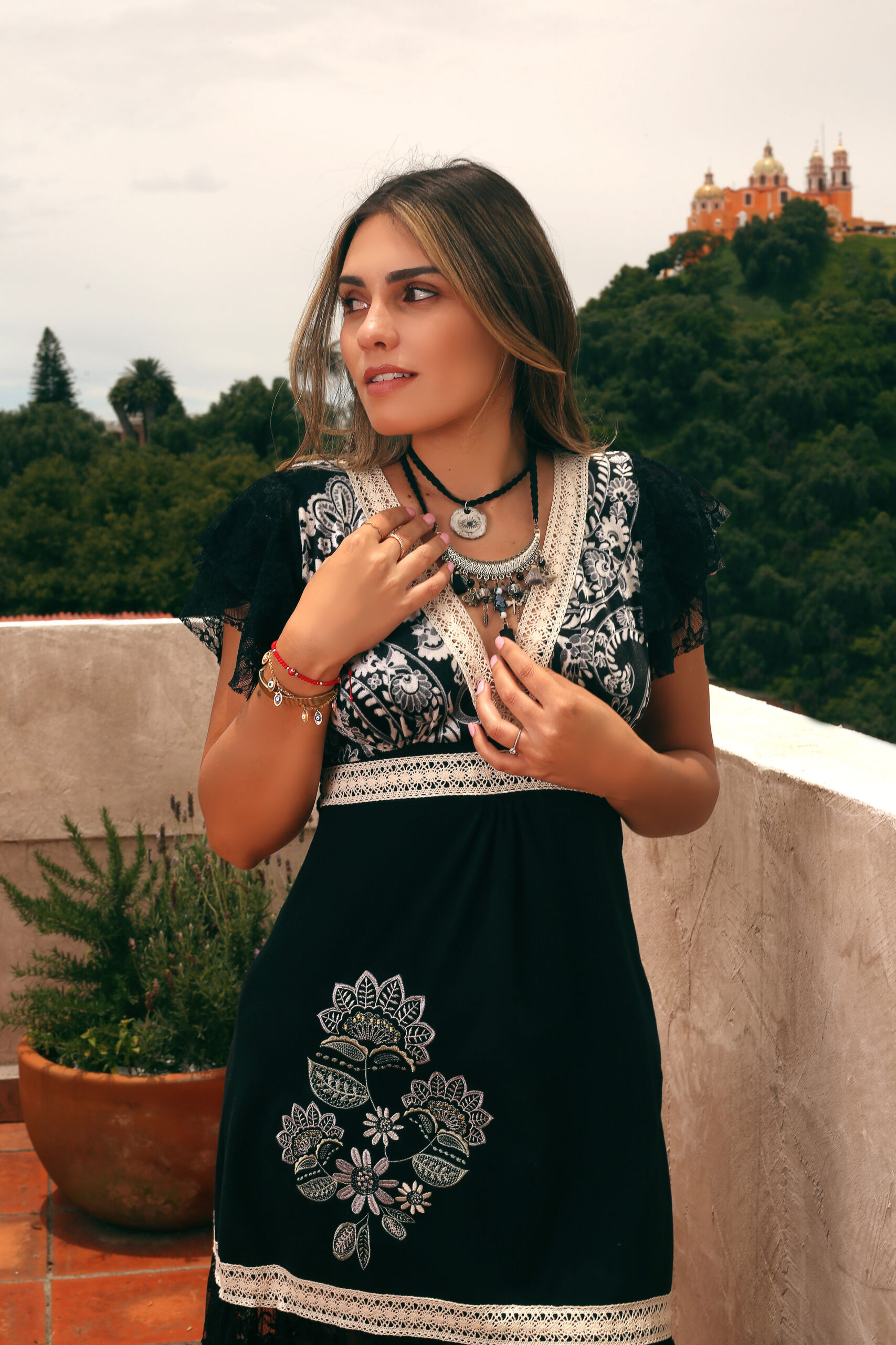 Encaje negro en faldón.