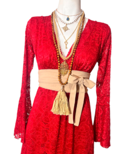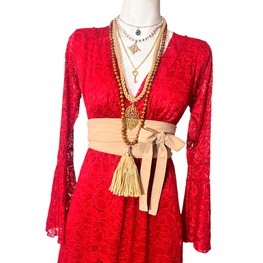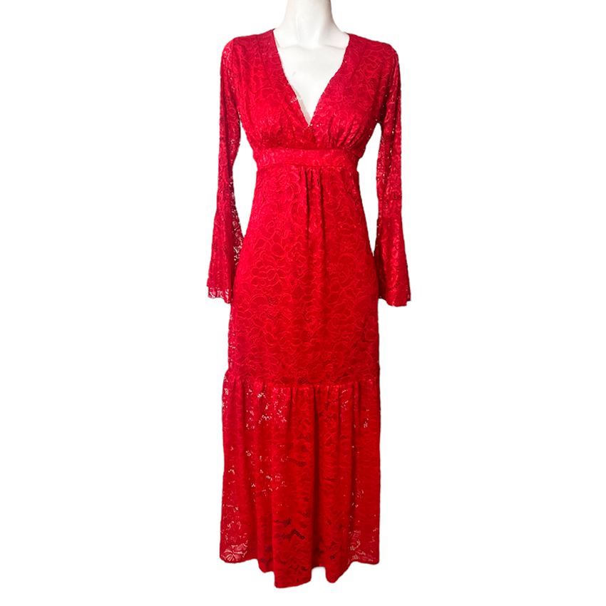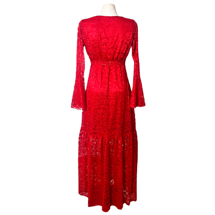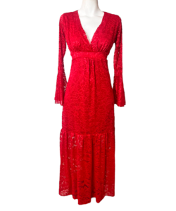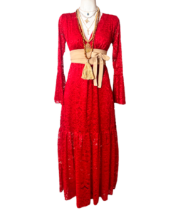 Vestido Dora Largo Campana rojo encaje