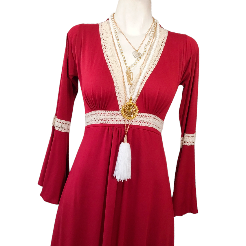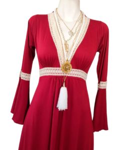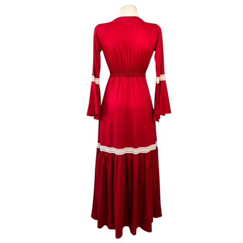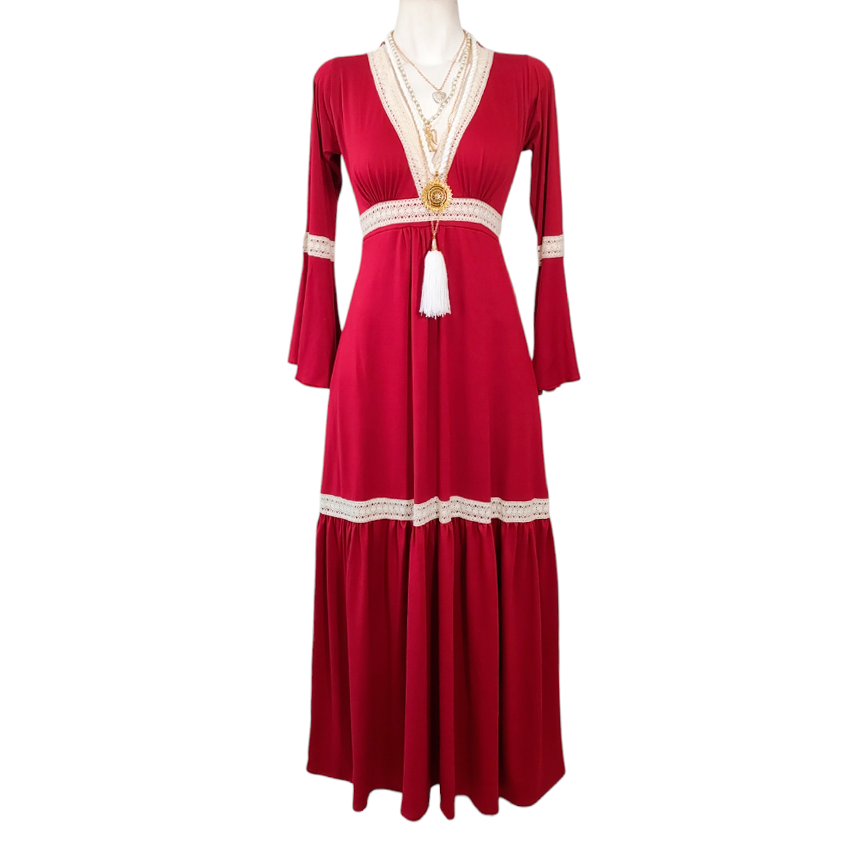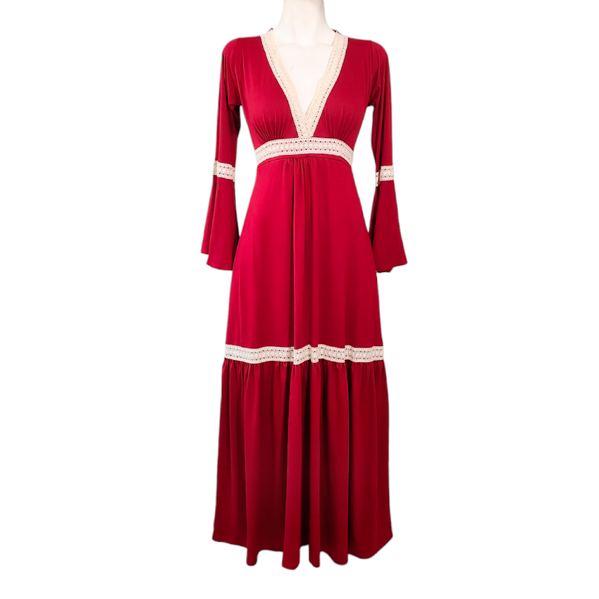 Vestido Dora Largo Campana rojo quemado