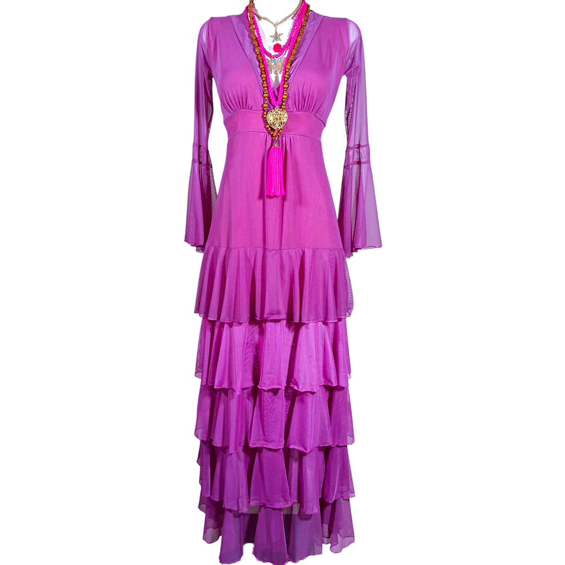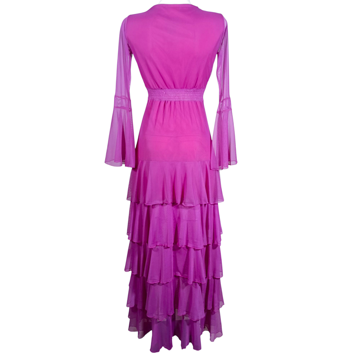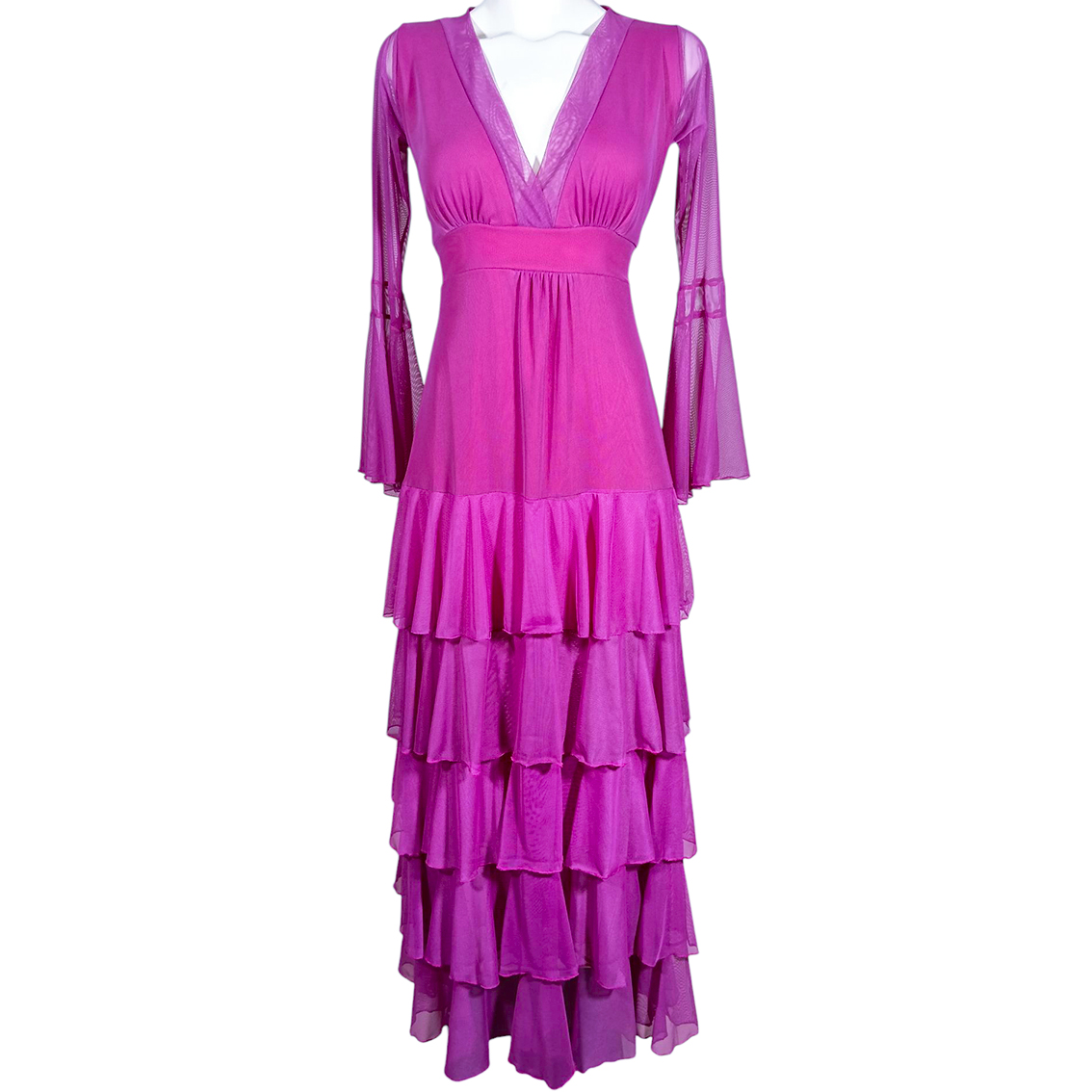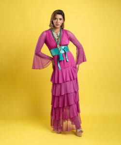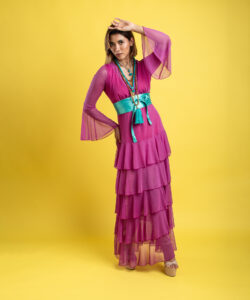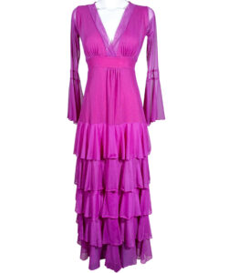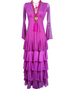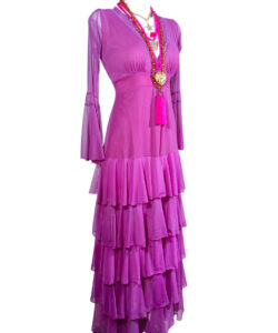 Vestido largo de olanes en faldón.