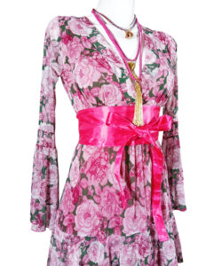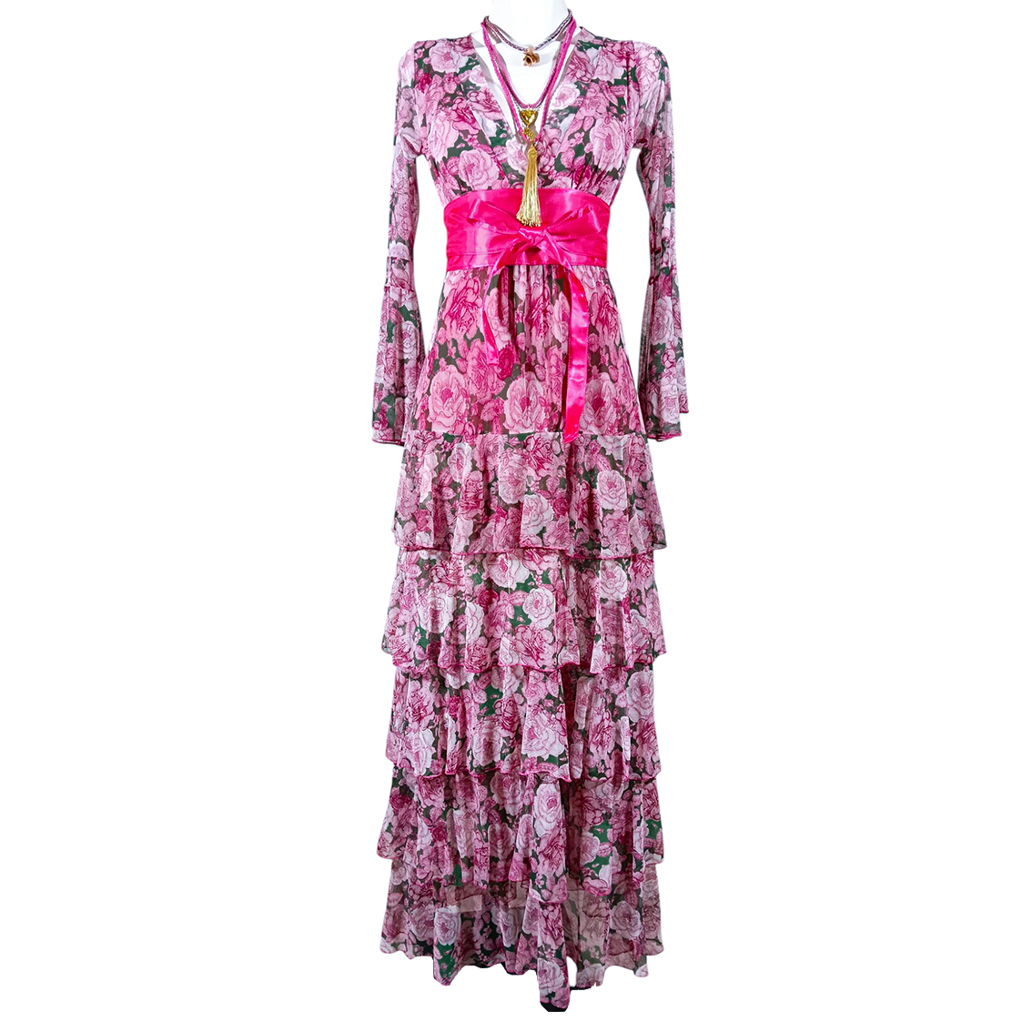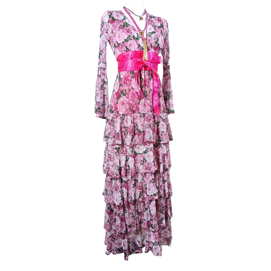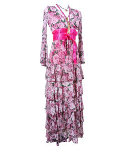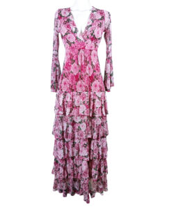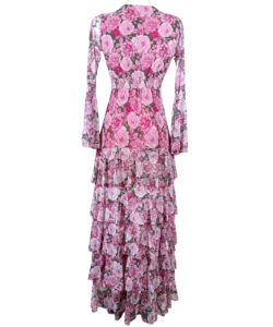Vestido largo de olanes en faldón.