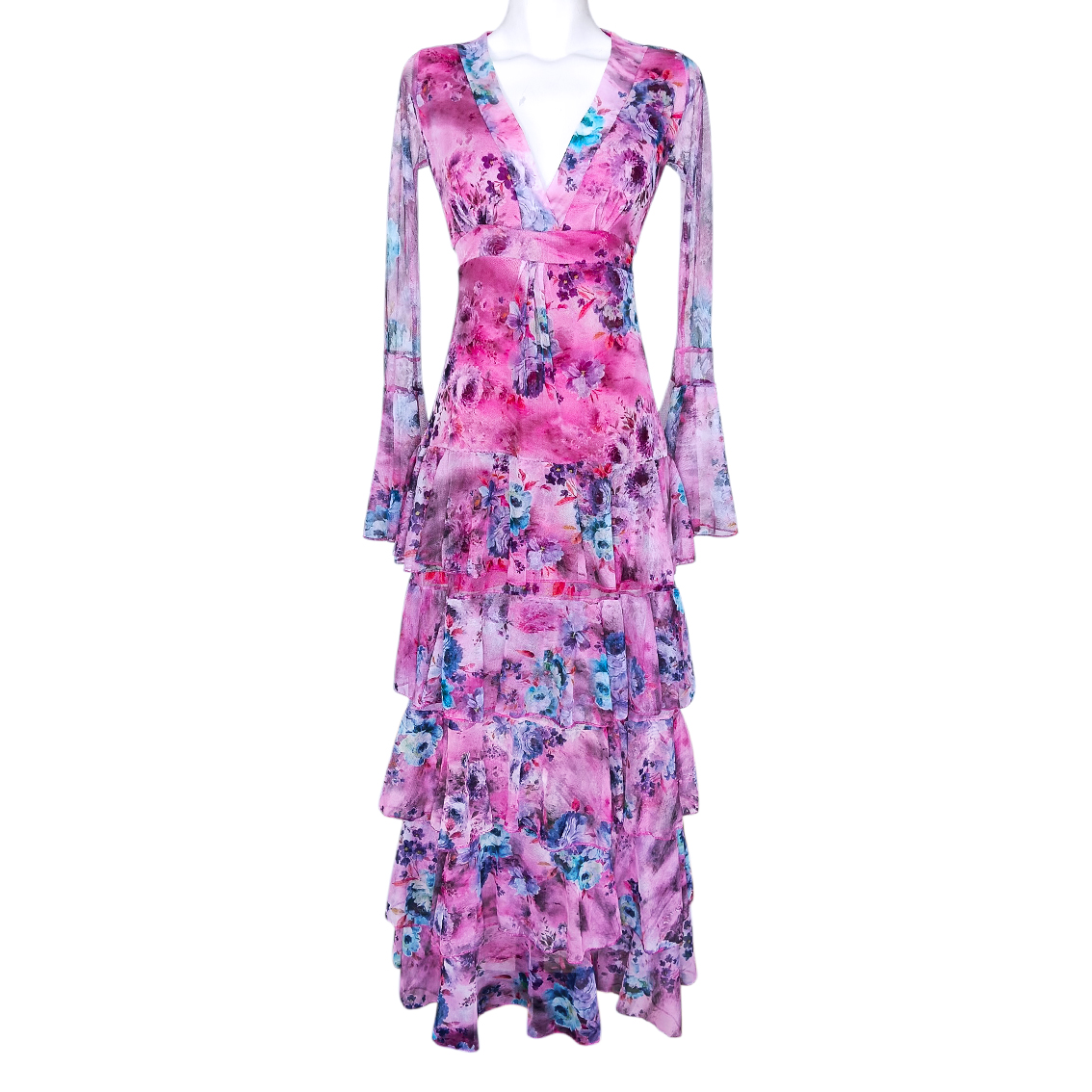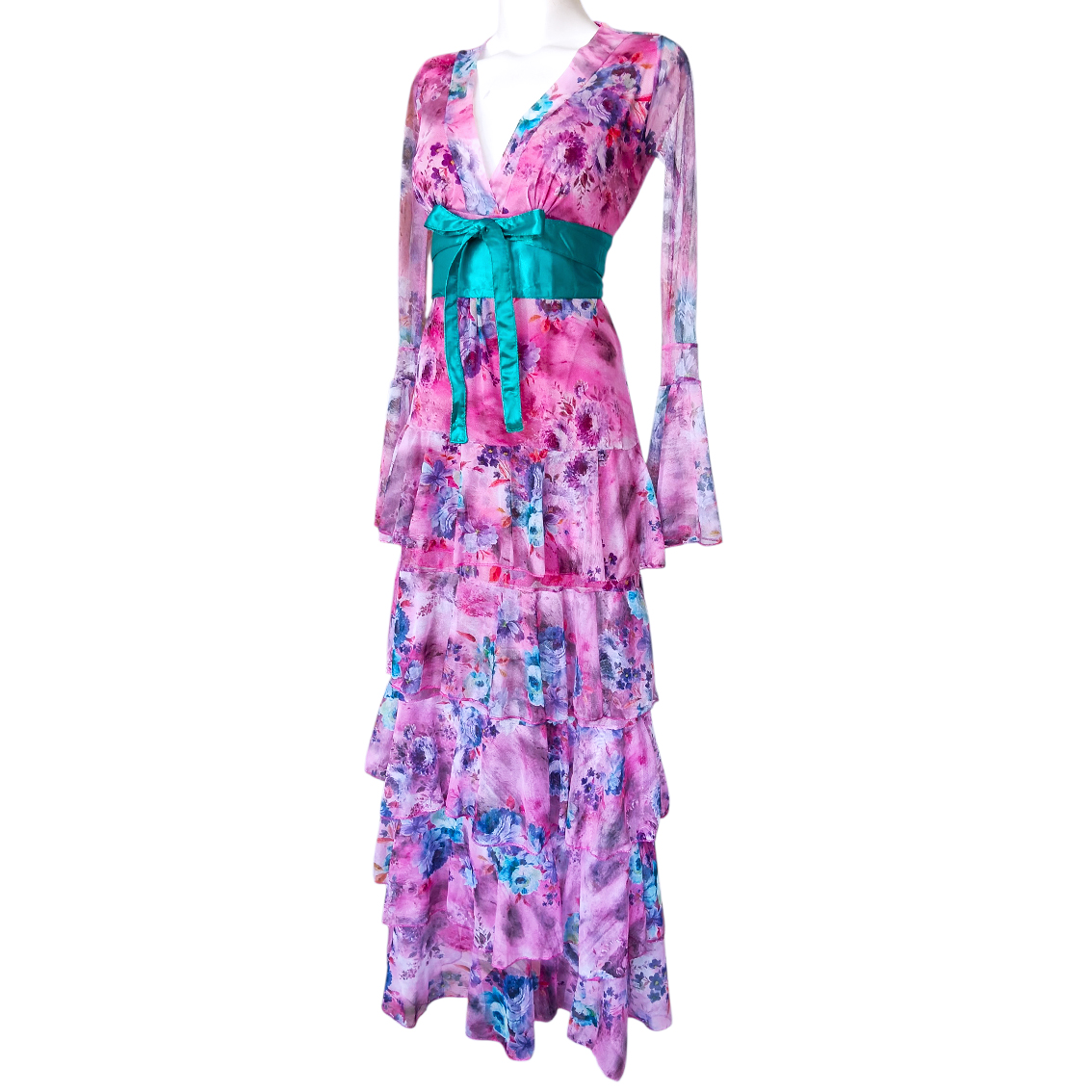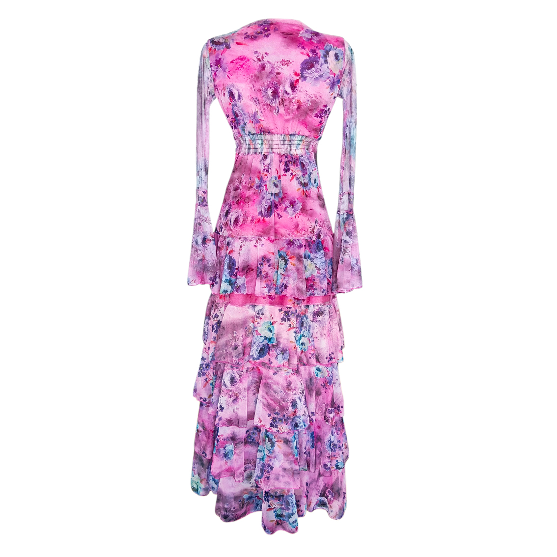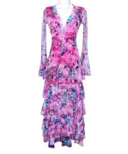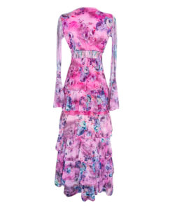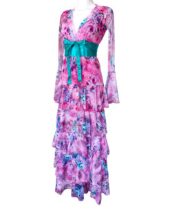 Vestido largo de olanes en faldón.