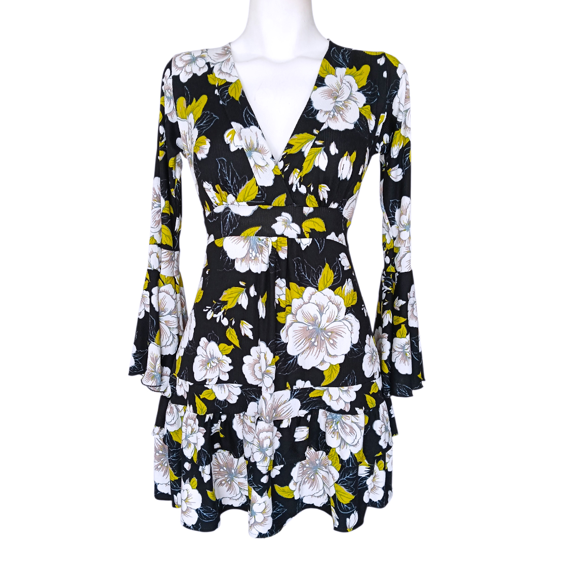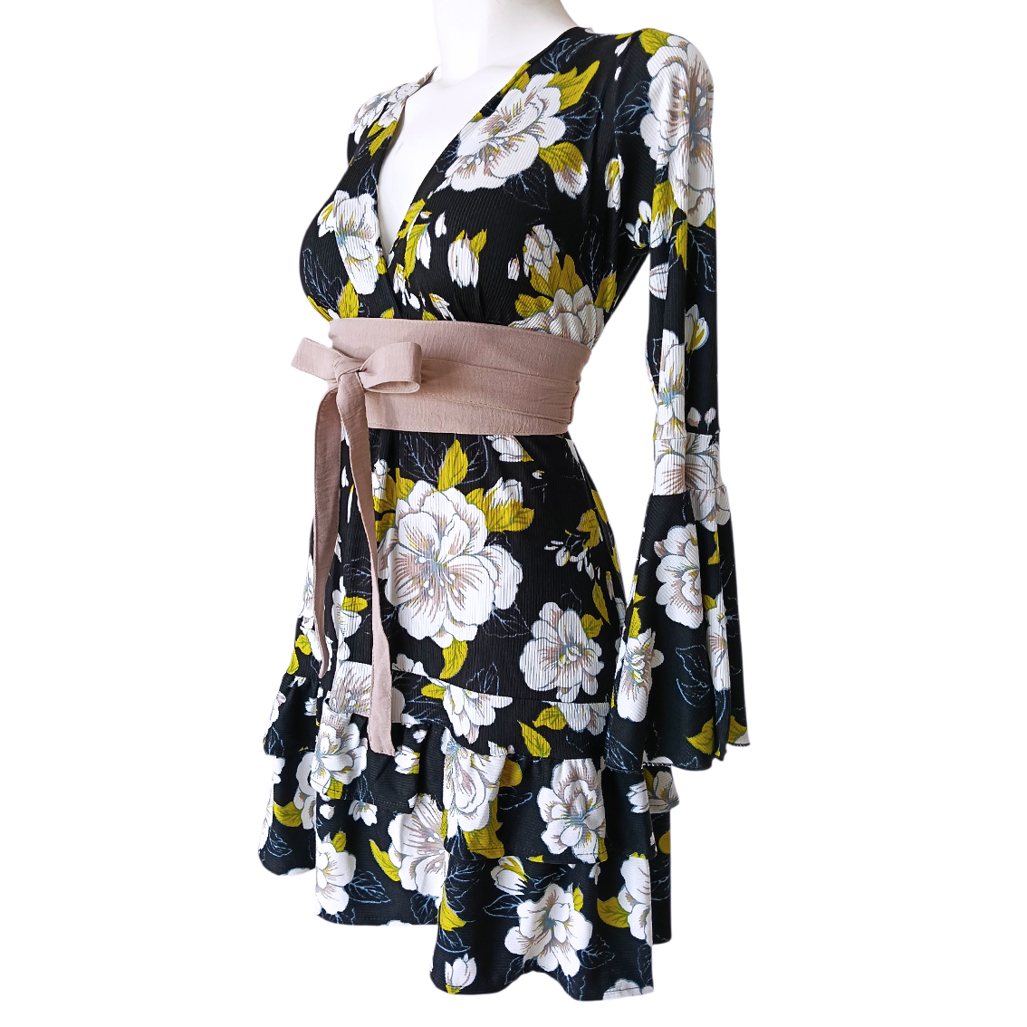 Color negro, estampado gardenias.