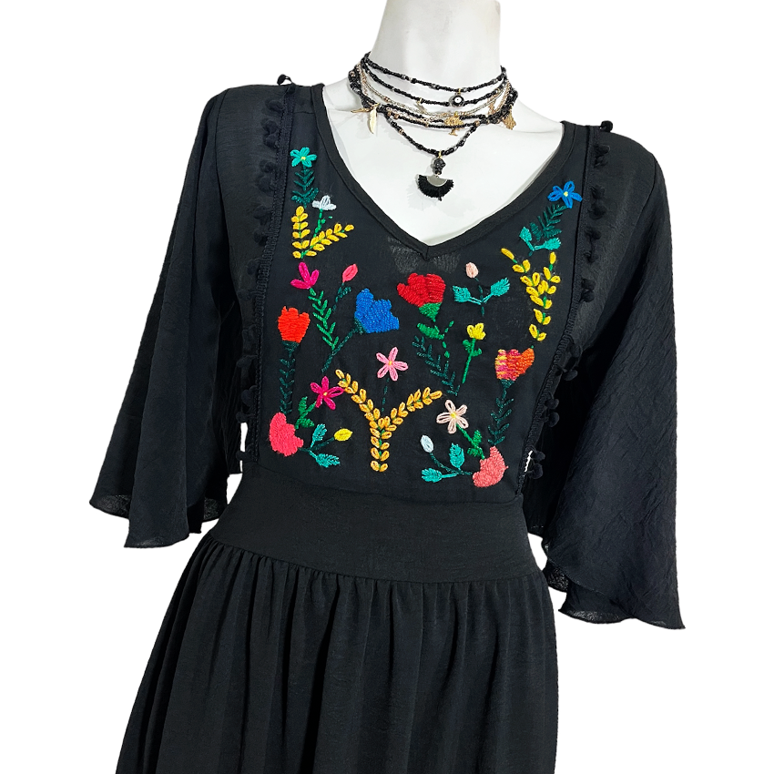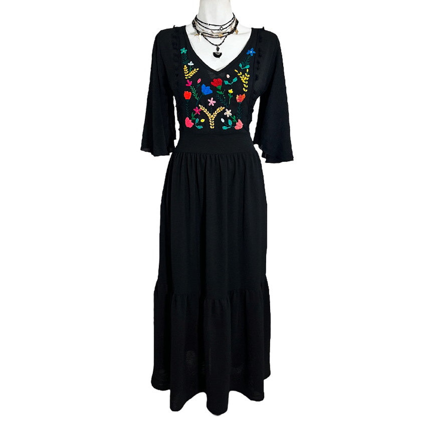 Vestido Emma negro negro bordado floral