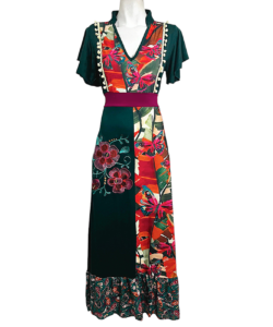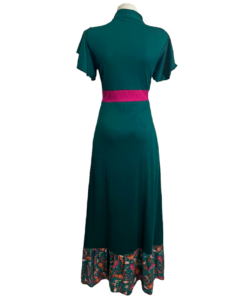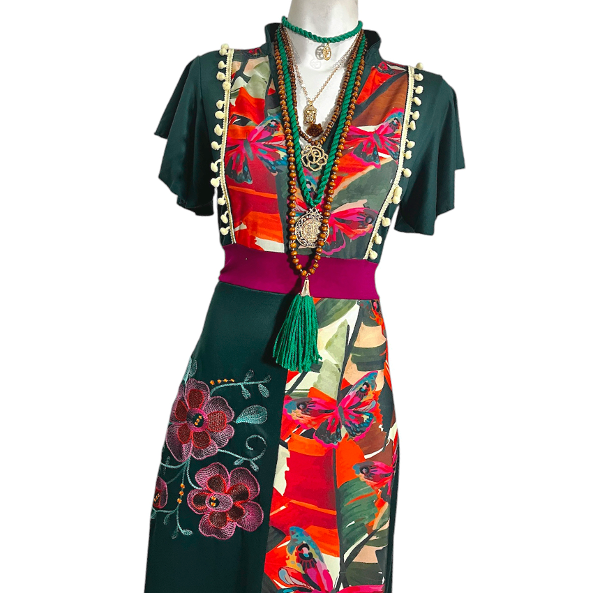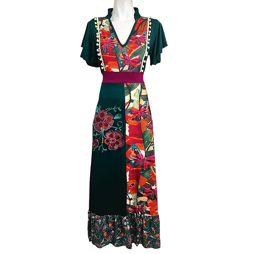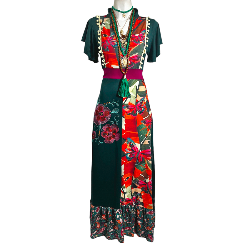 Vestido Hippie largo verde gerberas mariposas