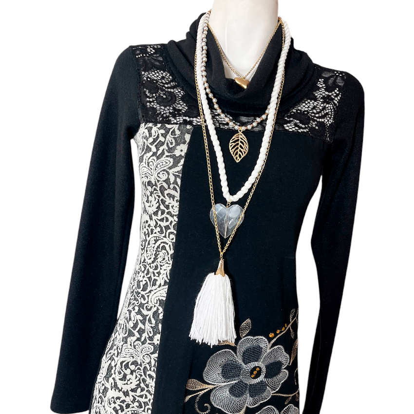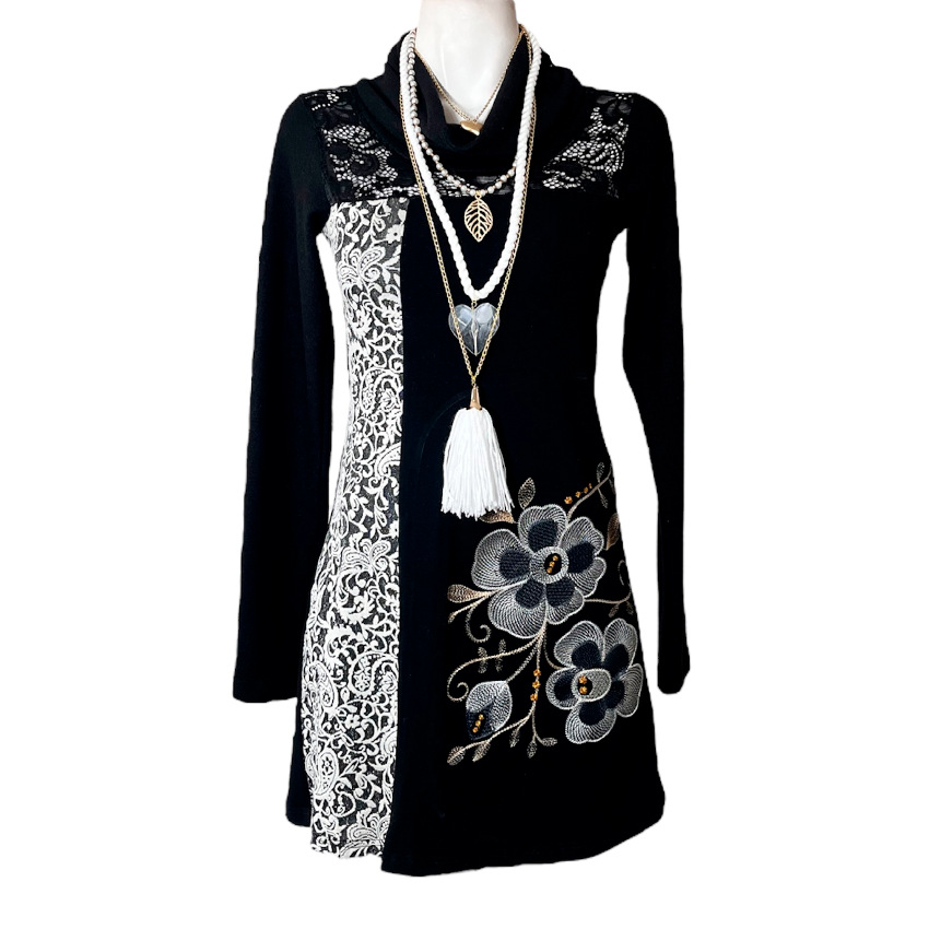 Vestido Monalisa Cuello negro brocado