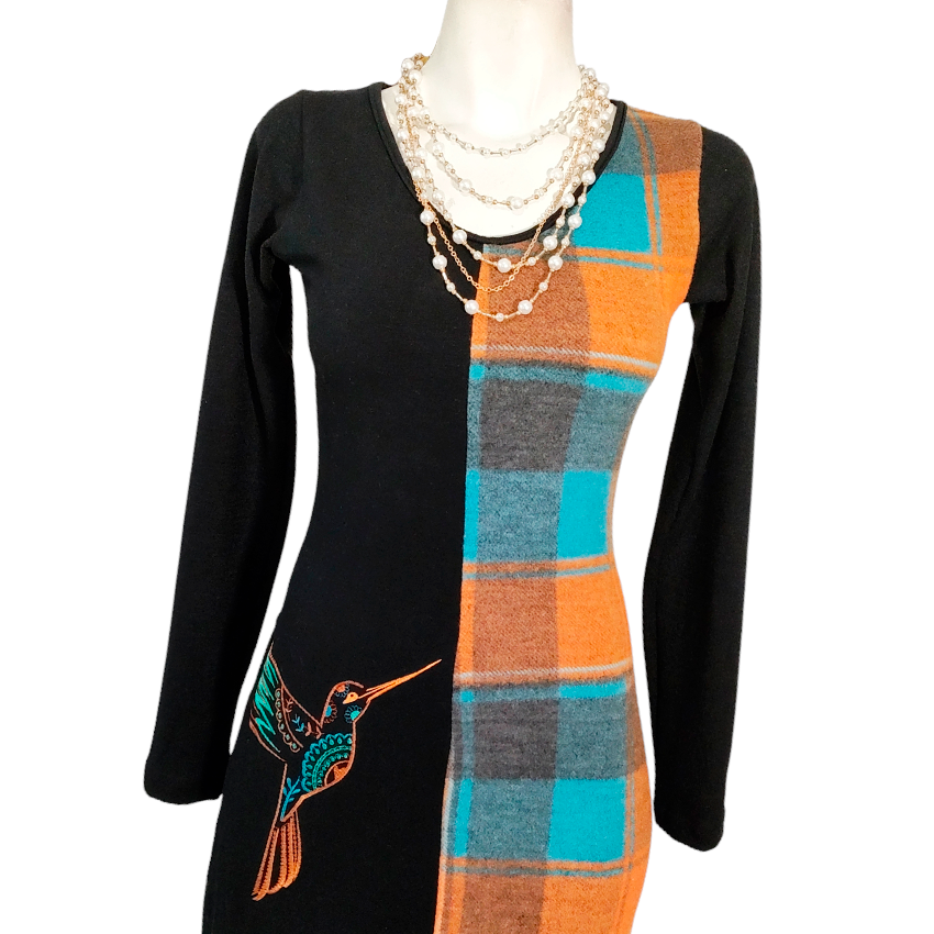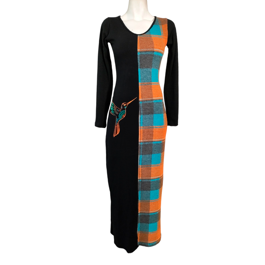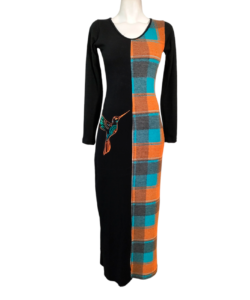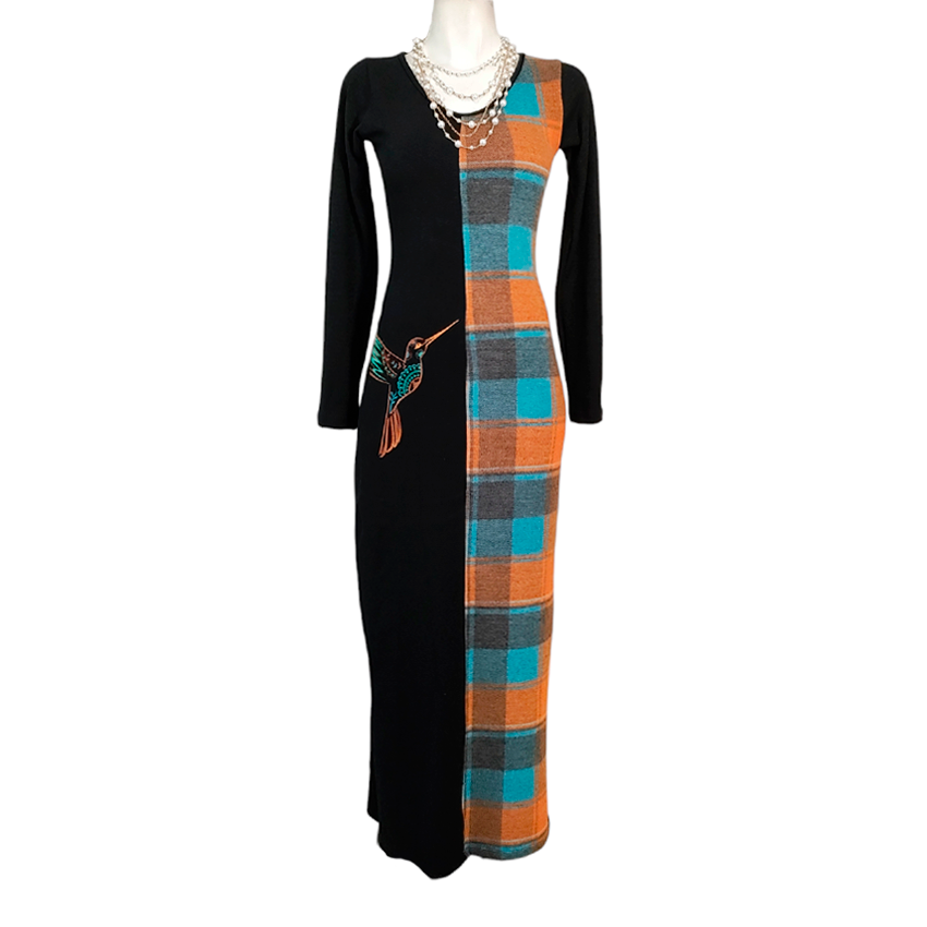 Vestido Monarca Largo cuadros naranja