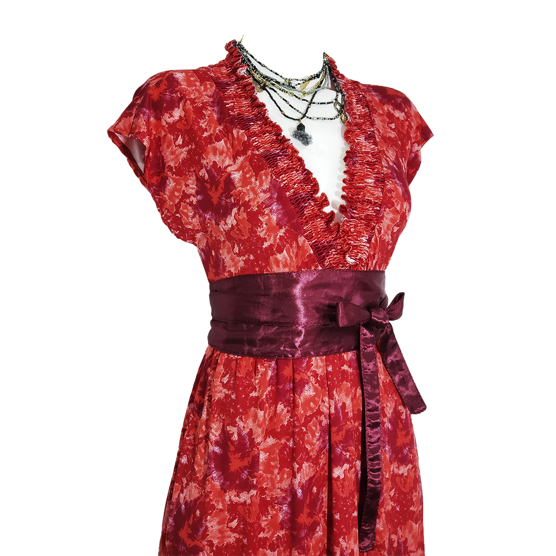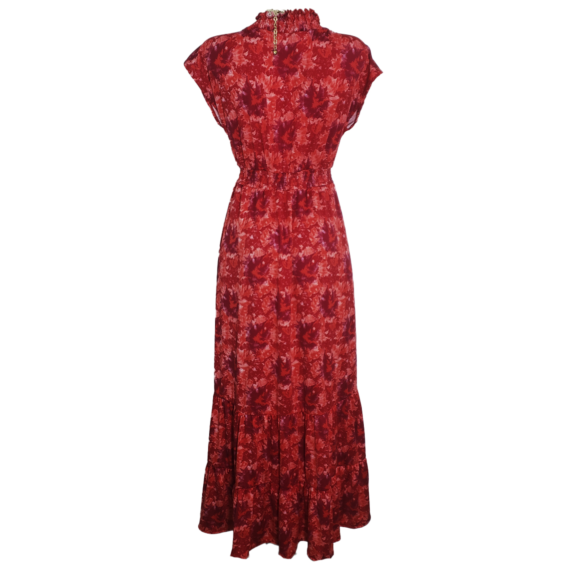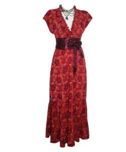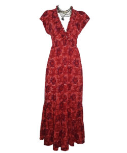 Vestido largo con escote V estampado rojo manchas