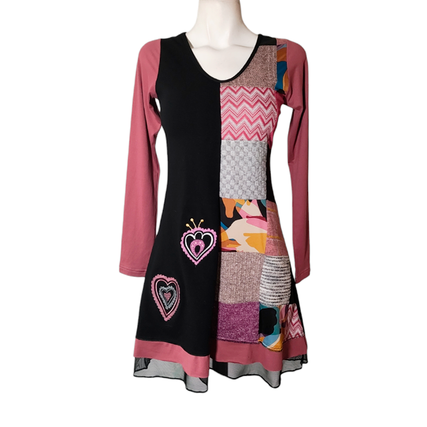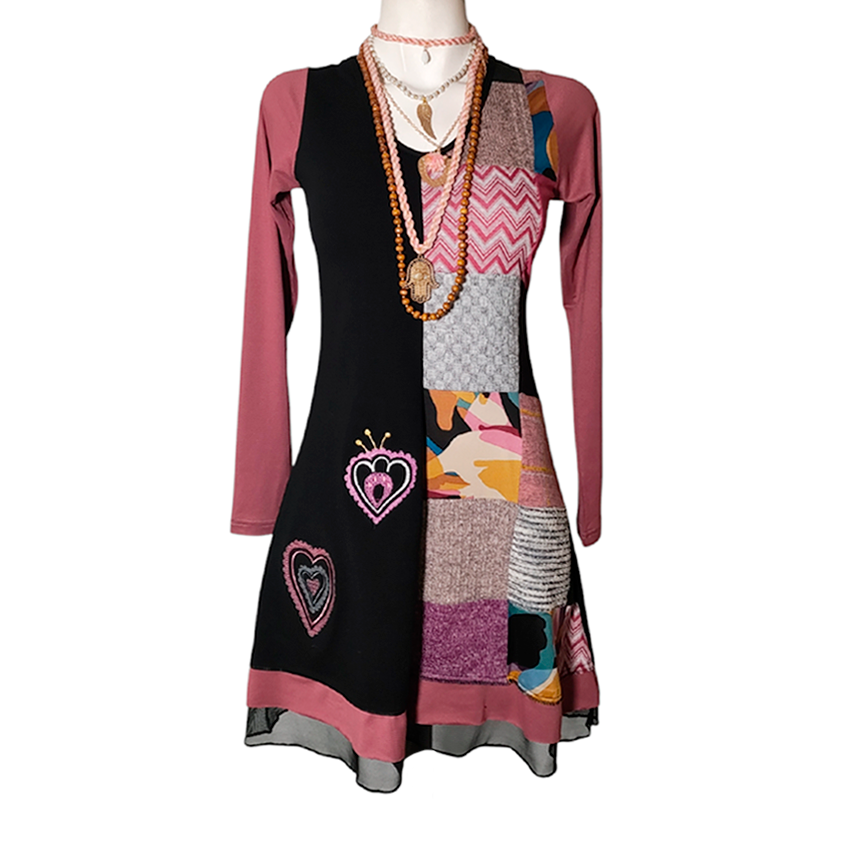 Vestido Simona Divi patch rosita corazones