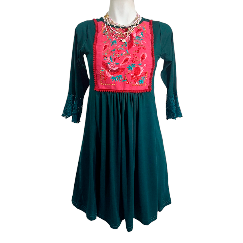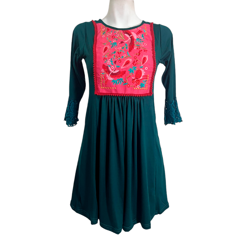 Vestido Toscana Corto alga bordado coral