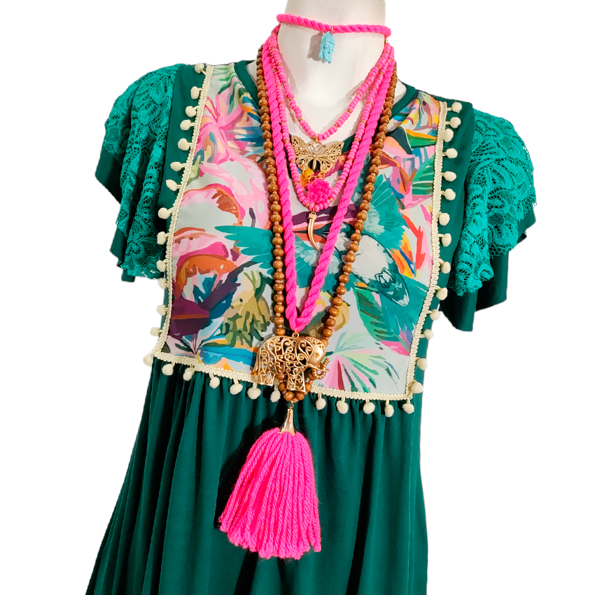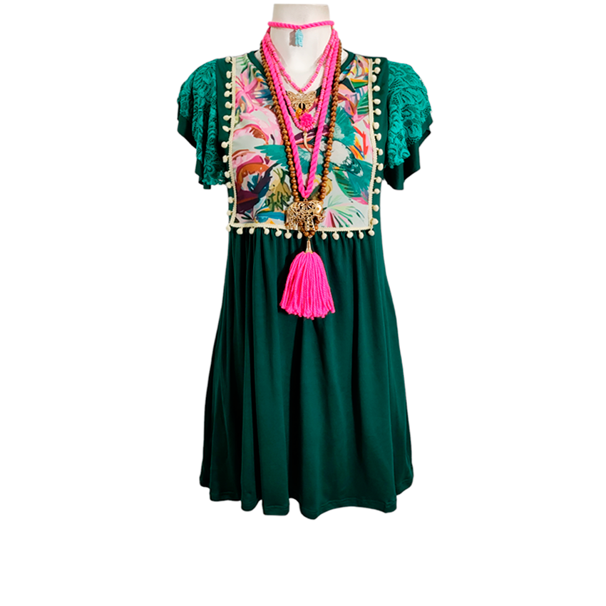 Vestido Toscana esmeralda colibrí